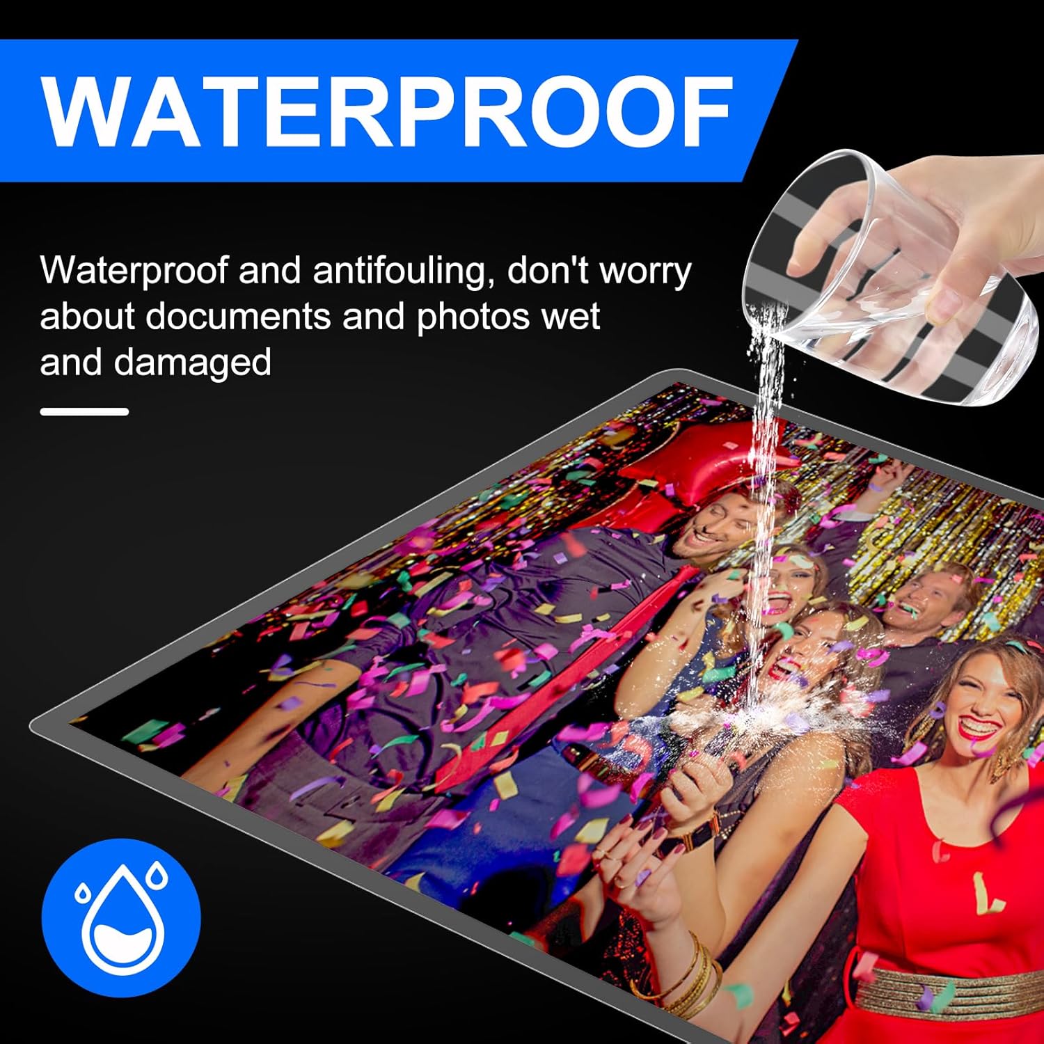 • PREMIUM MATERIAL: Crystal clear, glossy sheen, sturdy and Premium material. Laceration resistant, double coating, anti-stain, practical and waterproof, protect your document from scratching