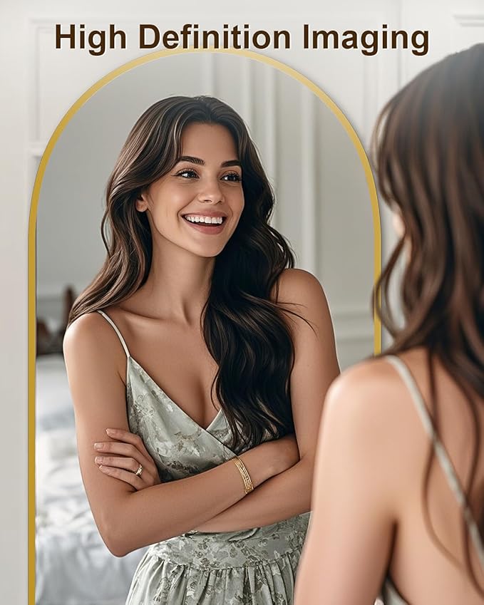 • Modern Arched Design: This arch full length mirror combines elegance and functionality, making any room appear brighter and more spacious. Enhance your space instantly.