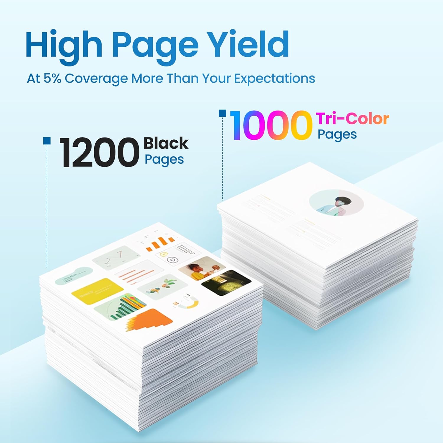• Higher Page Yield: Up to 1,200 Pages Per 910XL Ink Cartridge Black and 1,000 Pages for 910XL Color Ink Cartridge (At 5% coverage of A4 paper).