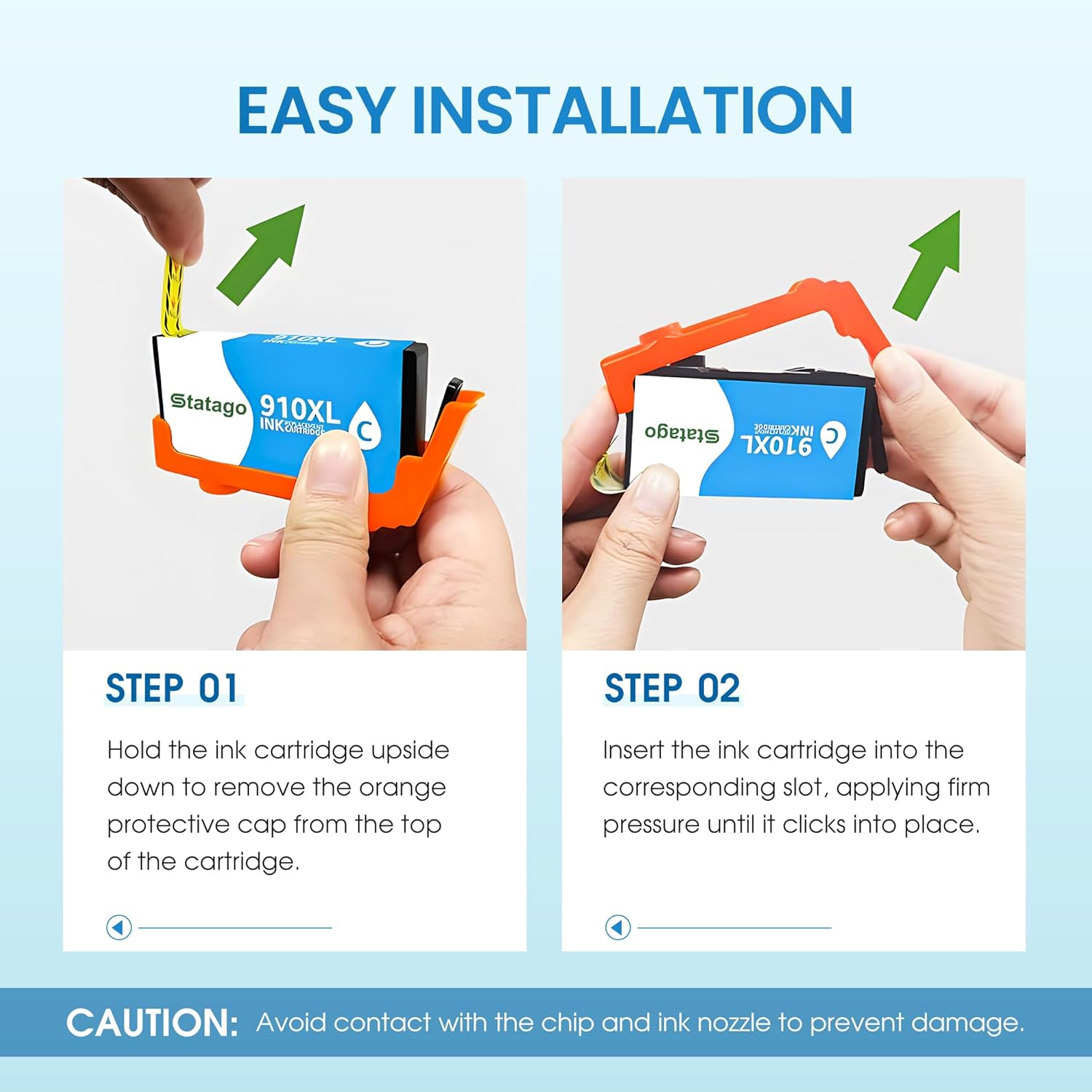• Superior Imagery: Experience the brilliance of Statago's 910xl ink cartridges, designed for HP 910 910XL ink cartridges. These cartridges ensure outstanding print quality, yielding documents, photos, and graphics that are crisp, vivid, and true to life. Statago 910XL 910 ink is professional prints, whether detailing text or capturing images.