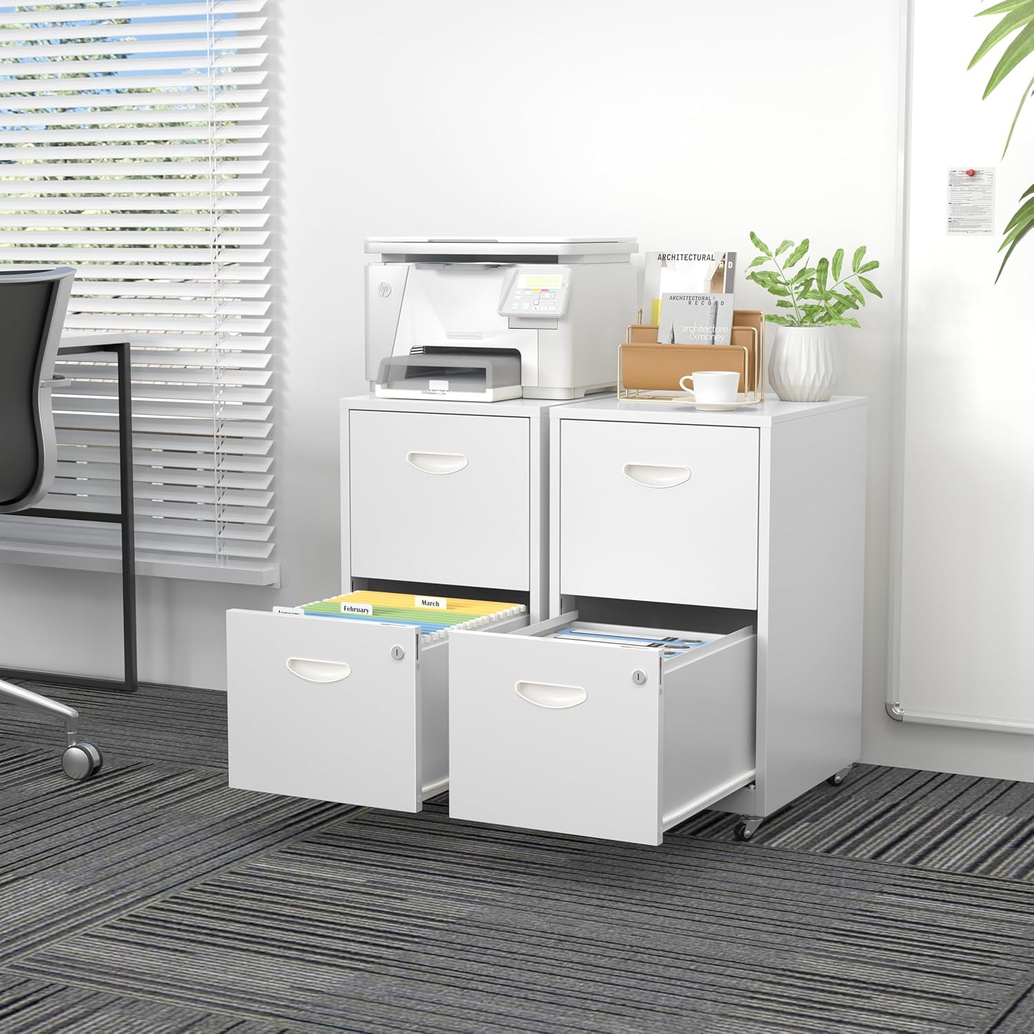 2 Drawer File Cabinet with Lock,White Rolling File Cabinet for Home Office, Metal Small Mobile Filing Cabinets on Wheels for Hanging Letter