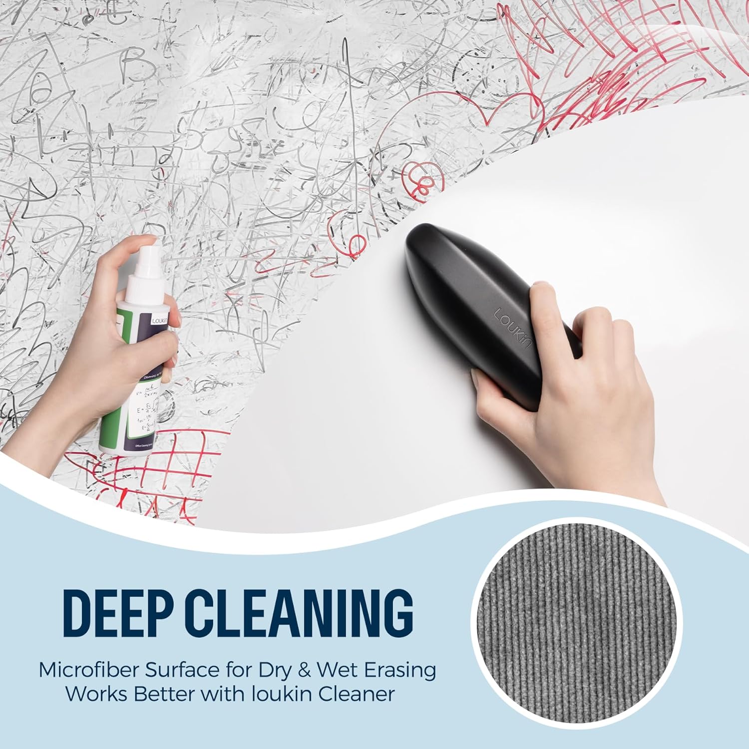 • Daily & Deep Cleaning: The reversible eraser pad offers two different surfaces. The electrostatic fabric side delivers superior friction, perfect for daily dry erasing. The microfiber side works for both dry and wet erasing, and pairs perfectly with Loukin cleaner for deep cleaning