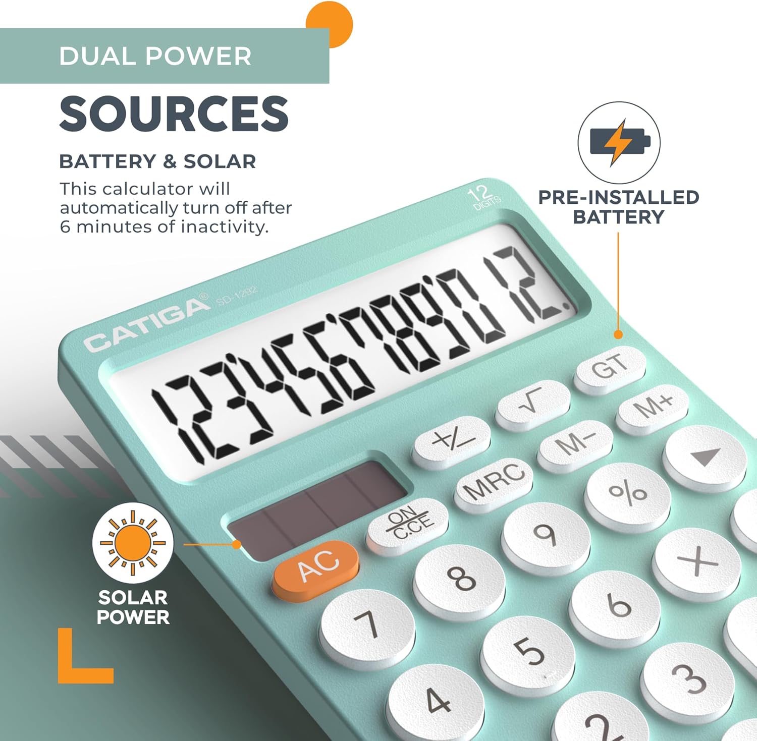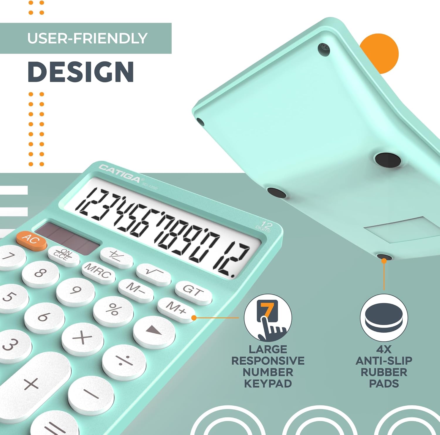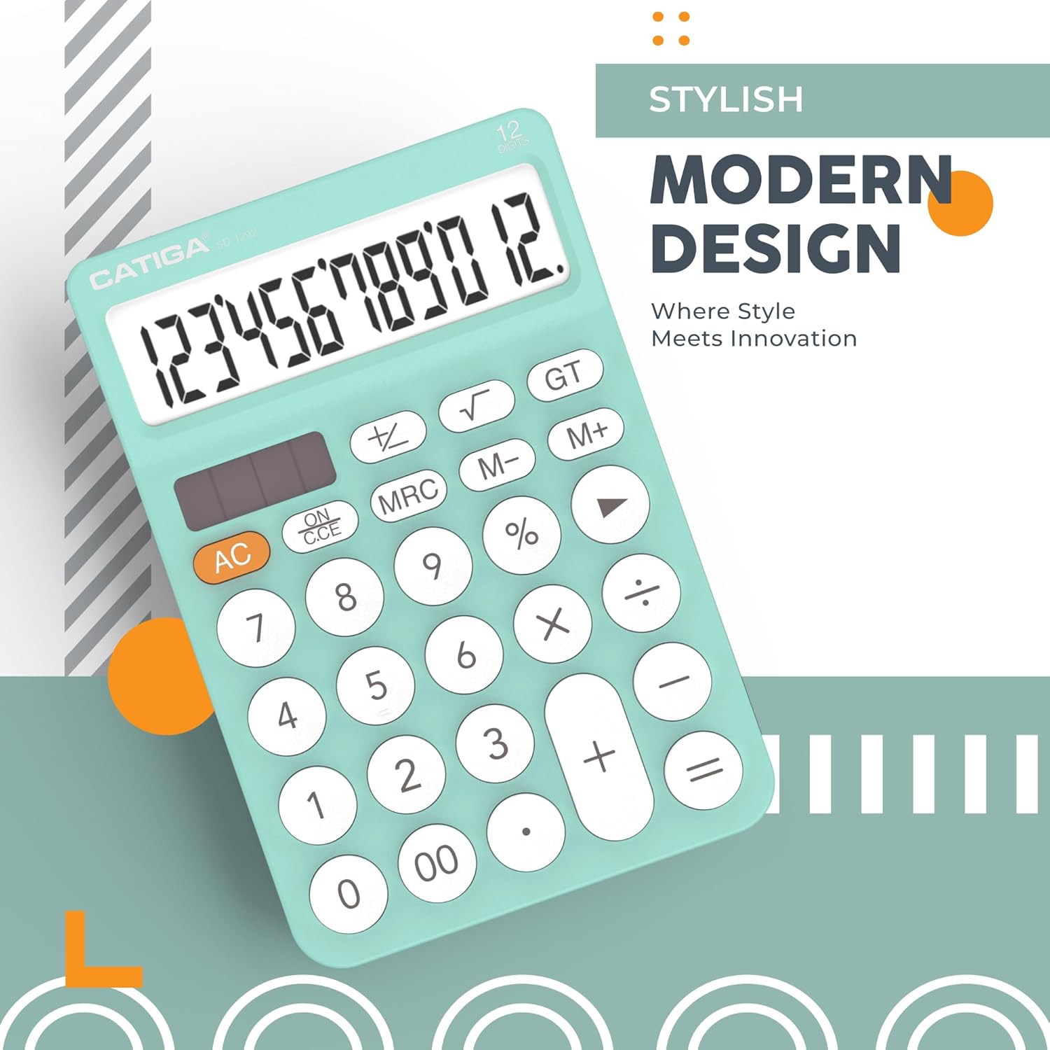 • 【Essential Cute Calculator for School and Study】The CATIGA 12-digit desk calculator is a cute calculator designed for students and daily users. Its lightweight, colorful build makes math tasks fun and easy. Perfect as a desktop calculator for school, home, or office, it delivers reliable performance with vibrant style.