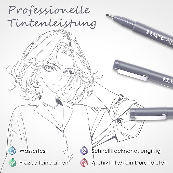 • Smooth nib, uniform lines: Kemyr Fineliner Pens have a smooth nib that allows you to feel unprecedented precision and smoothness when creating art. Uniform ink output keeps your lines consistent. Whether you are a writer, artist, cartoonist, designer, student, enthusiast, Kemyr Fineliner Pens can meet your needs.