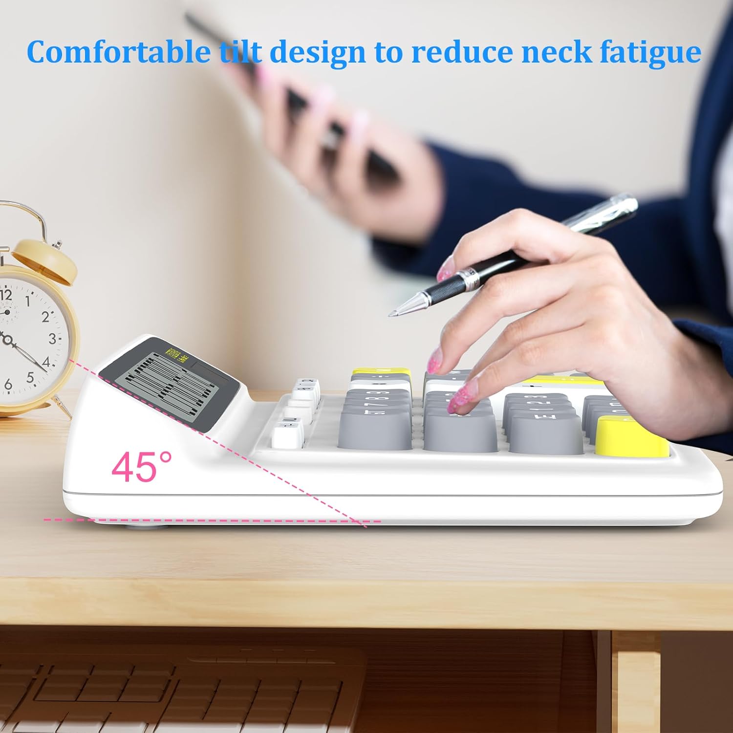Desktop Calculator with Extra Large 5-Inch LCD Display, 12-Digit Two Way Power Solar & Battery Office Calculator with Big Buttons for Business, Accounting & Home Use(White)