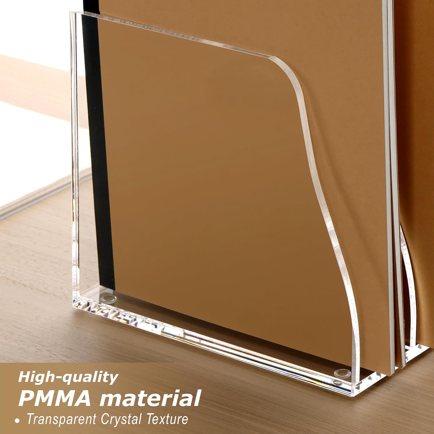 • Sturdy and Durable File Organising Shelf: Made of high quality 5mm thickness acrylic material, hand polished and sanded with smooth edges and rubber anti-slip pads on the bottom to make it more stable on the desktop and not easy to fall off!