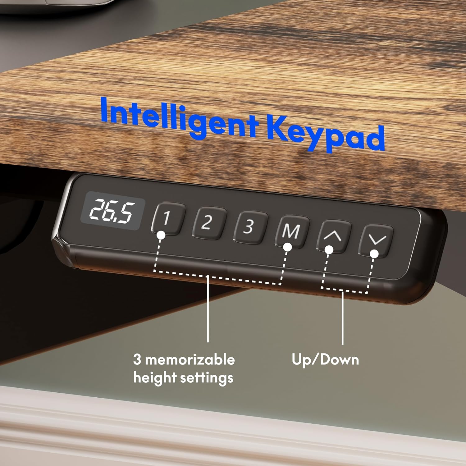 • 【ELECTRIC HEIGHT ADJUSTMENT FOR COMFORT & HEALTH】: Seamlessly switch between sitting and standing positions with the desk's smooth electric lift system from 28.7-47.2”. Adjust the height to your preferred ergonomic setting, promoting better posture and reducing fatigue throughout the day.