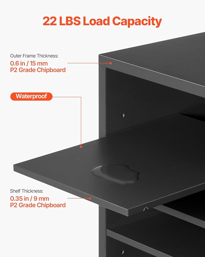 • Built to Last: Our wood literature organizer is made from sturdy P2 particle board and MDF, each shelf holding up to 22 lbs / 10 kg. Whether you're storing heavy files or everyday items, this organizer stands strong. Plus, it's EPA certified, so it's secure for you and your family. The smooth, polished surface is waterproof, scratch-resistant, and easy to wipe clean.