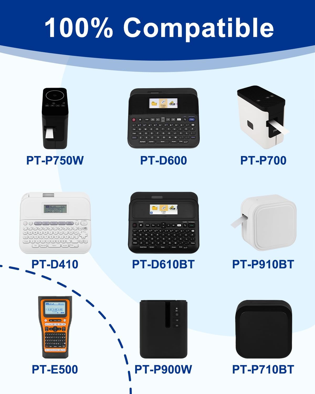 • Compatible with brother ptouch label maker: PT-D600, PT-D610BT, PT-D600VP, PT-P700, PT-P710BT, PT-P750WVP, PT-P900W, PT-P910BT, PT-2730VP, PT-H500LI, PT-2730, PT-2430PC, PT-2300, PT-E500, PT-1400, PT-1500, PT-1500PC, PT-1600, PT-2110, PT-2200, PT-2210, PT-2300, PT-2310, PT-2400 ect