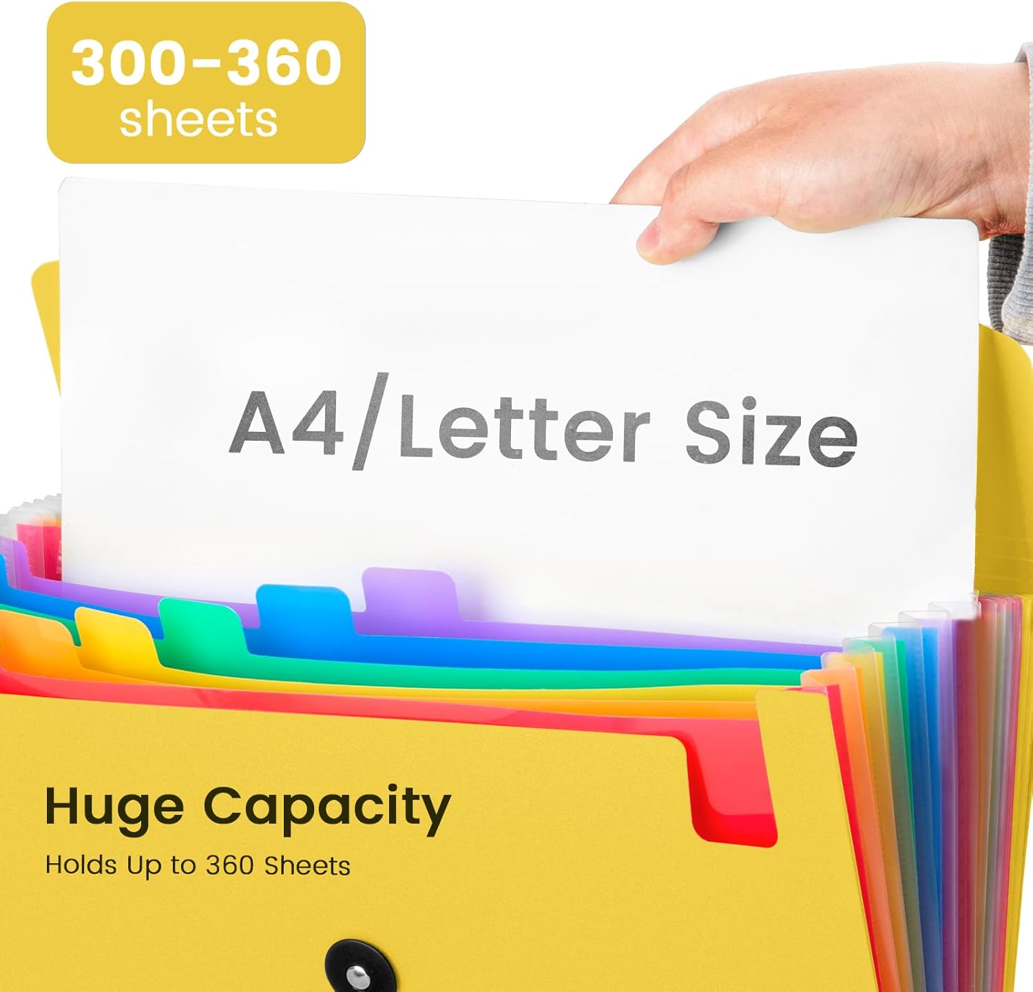 • Extra Capacity: 13 pocket accordion folder size is 13 x 9.6 inches, holds up to 300~360 sheets of paper. Comes with 12 writable labels to help find what you want easily