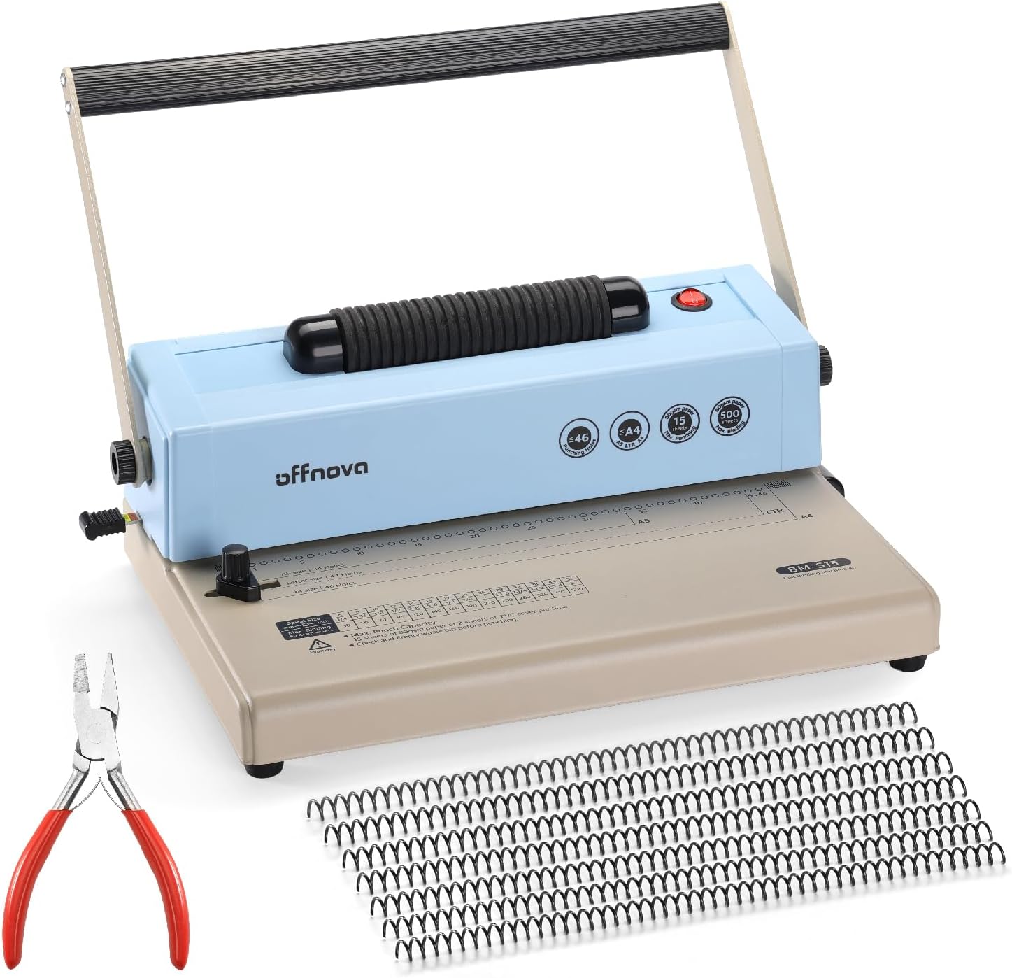 OFFNOVA Spiral Binding Machine, Spiral Coil Binder with Electric Coil Inserter, Easy to Punch Handle, Adjustable Side Margin, for Letter/A4/A5, Includes 100pcs 5/16" Plastic Coils & Crimper Plier