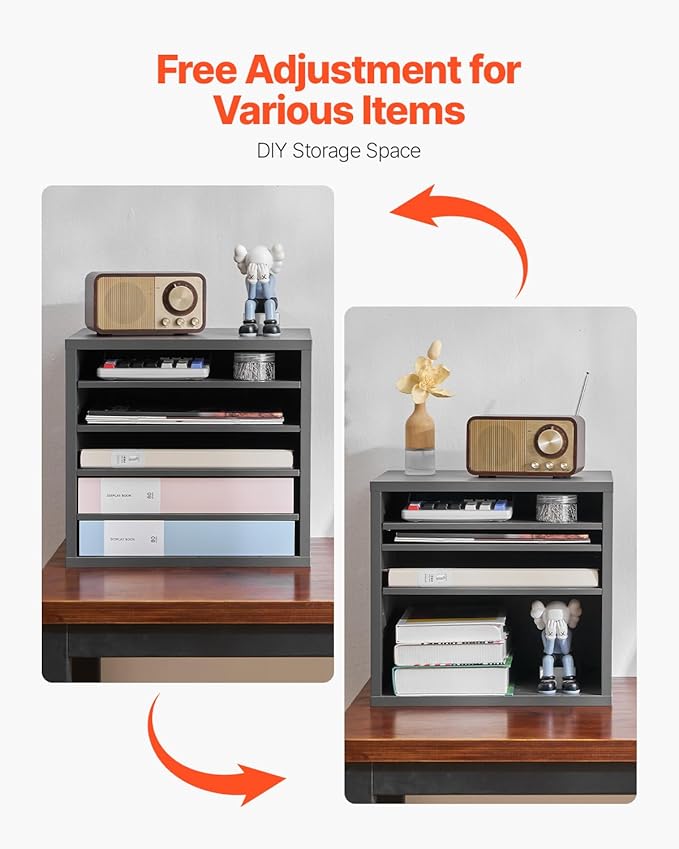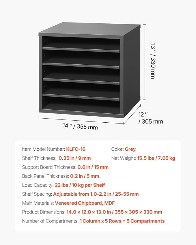 VEVOR Literature Organizer, 5 Compartments Office Mailbox with Adjustable Shelves, Wooden Mailbox Sorter Medium Density Fiberboard Office Home Classroom Storage for Files, Documents, Papers, Grey