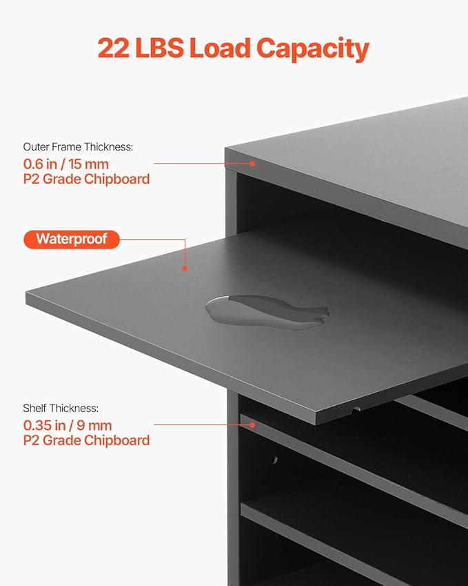 • Built to Last: Our wood literature organizer is made from sturdy P2 particle board and MDF, each shelf holding up to 22 lbs / 10 kg. Whether you're storing heavy files or everyday items, this organizer stands strong. Plus, it's EPA certified, so it's secure for you and your family. The smooth, polished surface is waterproof, scratch-resistant, and easy to wipe clean.