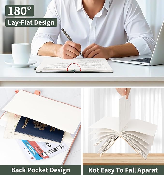 • 180° Lay-Flat Design: This A5 notebook features a 180° lay-flat design, allowing you to write comfortably across the entire page. The flat-open feature makes it ideal for journaling, note-taking, and creative writing, providing a seamless and efficient writing experience without any creasing or bending.