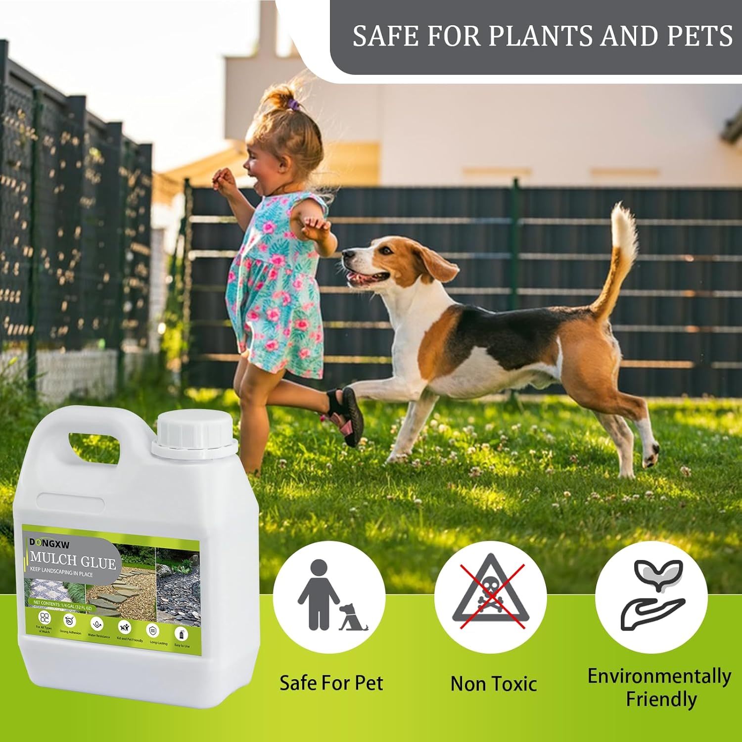 • Strong Adhesion Mulch Glue for Landscaping: Dongxw’s powerful mulch glue securely holds rocks, gravel, rubber mulch, and wood chips in place, minimizing erosion and preventing displacement from wind and rain while allowing water and essential nutrients to penetrate the soil, curbing weed growth and promoting a healthy landscape.