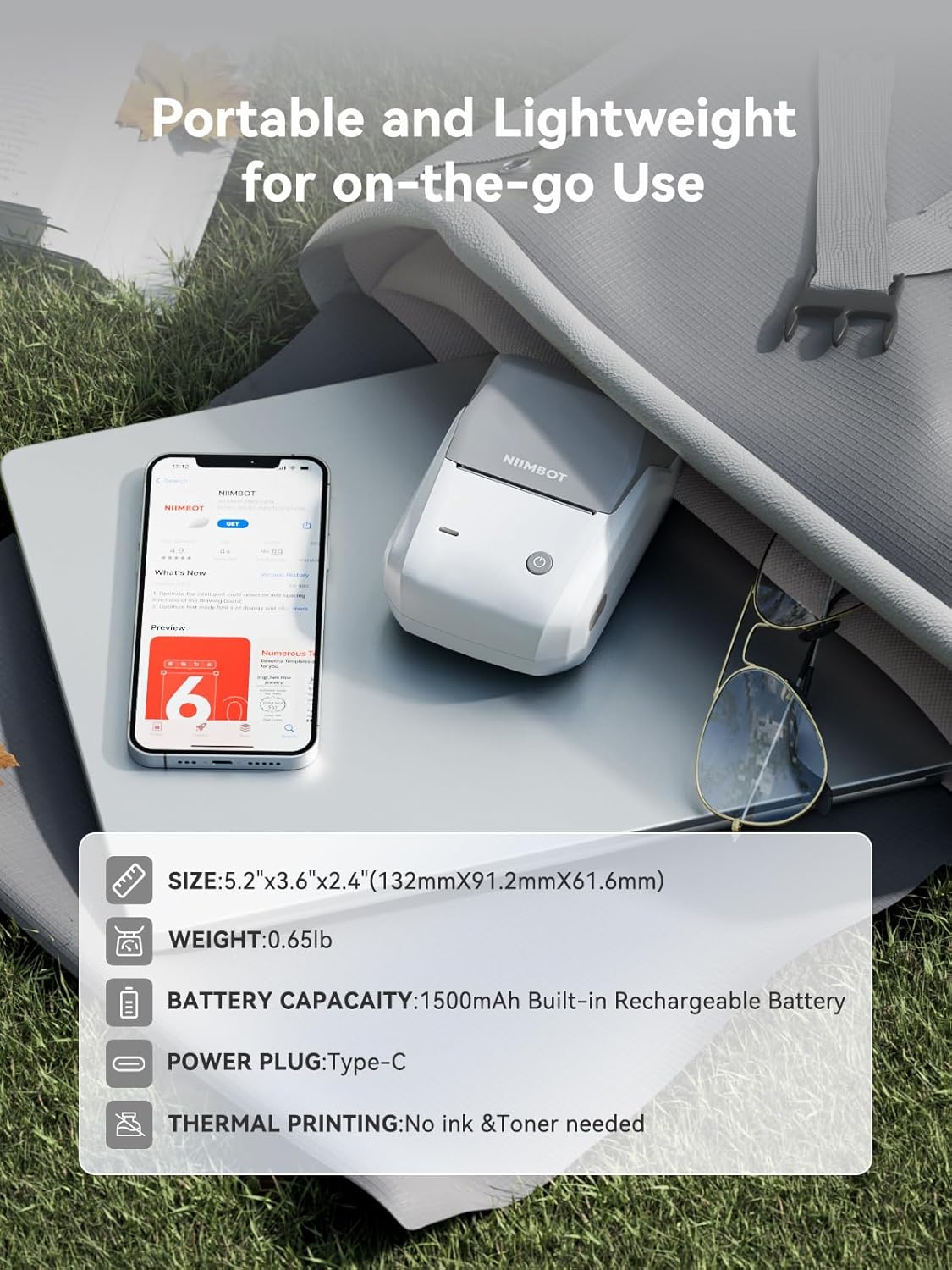 • 【Portable and Rechargeable】 The thermal label printer weighs 293g and can slide into your pocket, easy to be carried anywhere. Built-in durable and rechargeable 1500mAh battery standby time up to 100 days on a single charge.