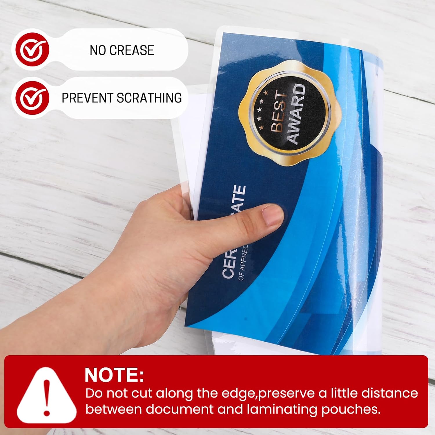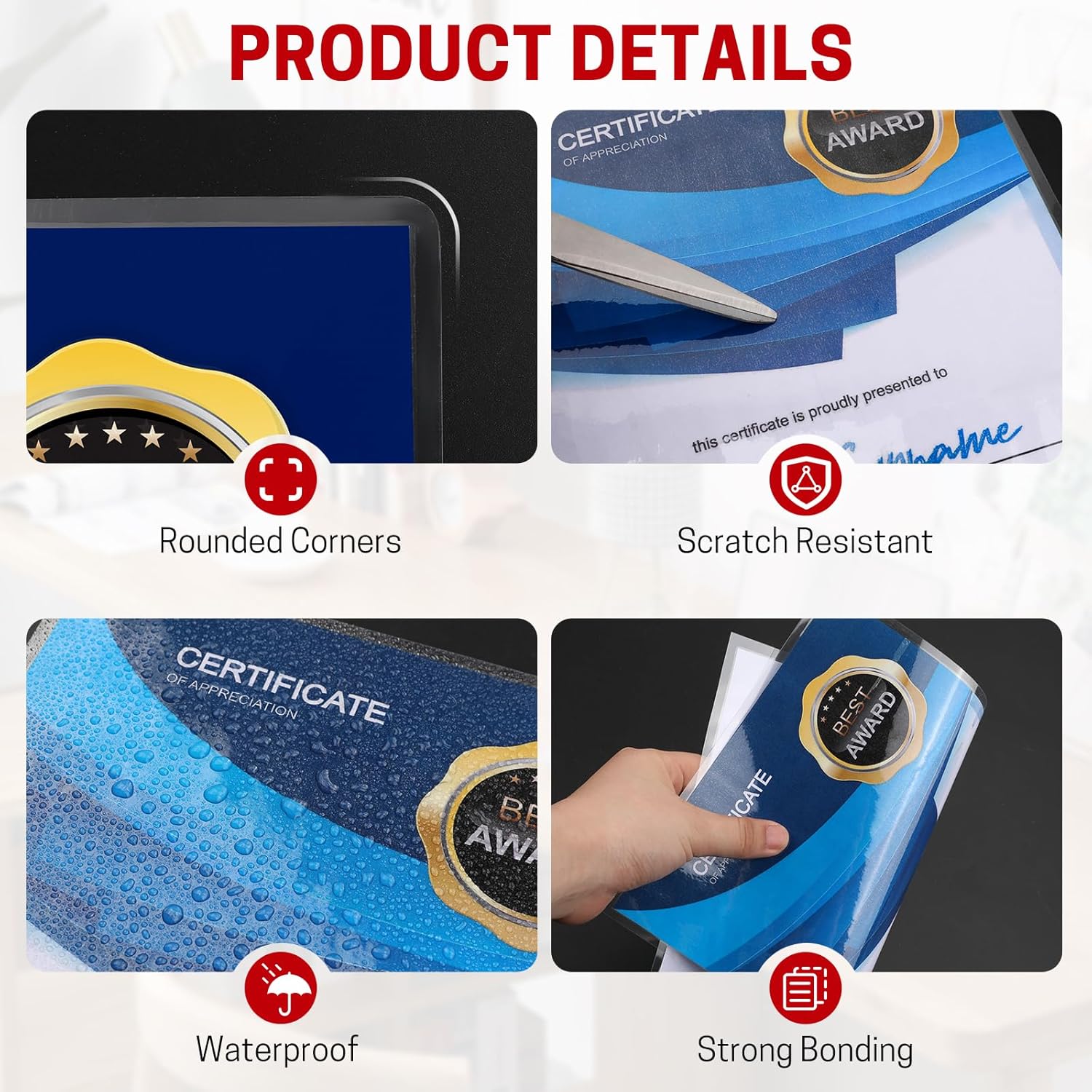 • Application:Perfect for protecting certificates,signs,photos,awards,calendars,kids artworks.It can seal and protect your documents it can be used in classroom, home and office.Compatible with all thermal laminator machine brands