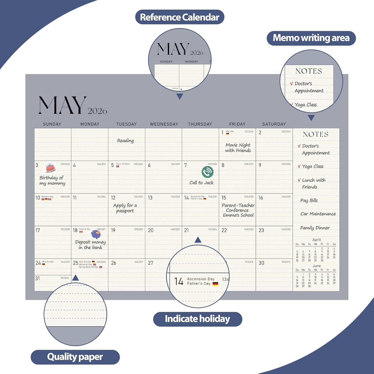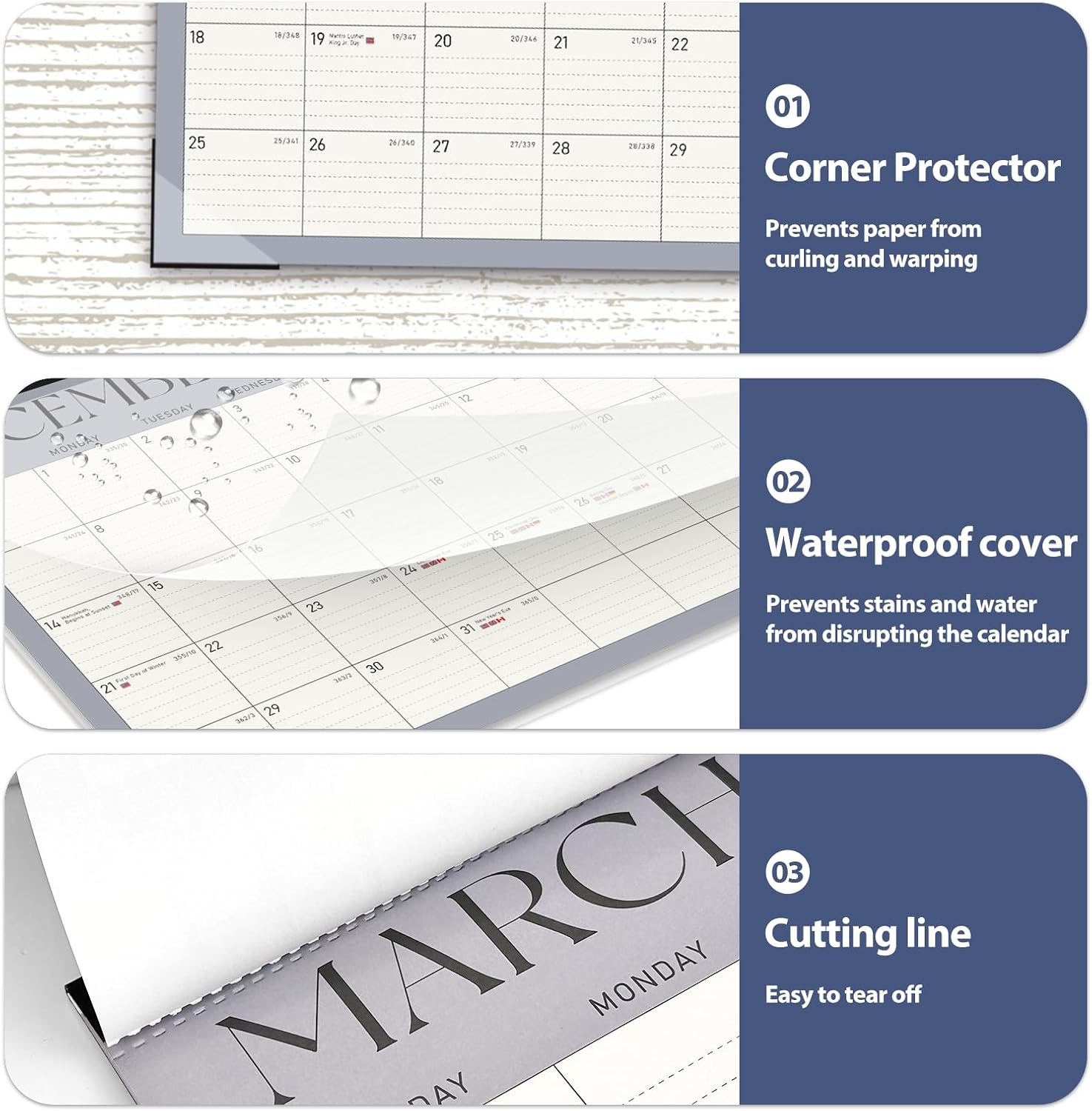 • [QUALITY THICK PAPER] -Crafted with thick paper, the calendar prevents ink bleed-through, keeping the surface neat and tidy for a clear and pleasant view. Our calendar is printed on FSC-certified wood-based paper.