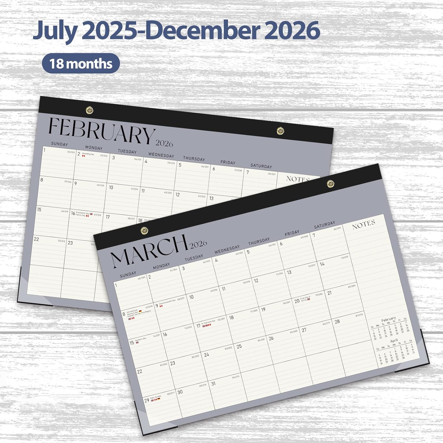 • [EXTENDED PLANNING PERIOD] -The 2025 desk calendar covers 18 months from July 2025 to Dec 2026, offering an extended planning period for your schedules, appointments and events.