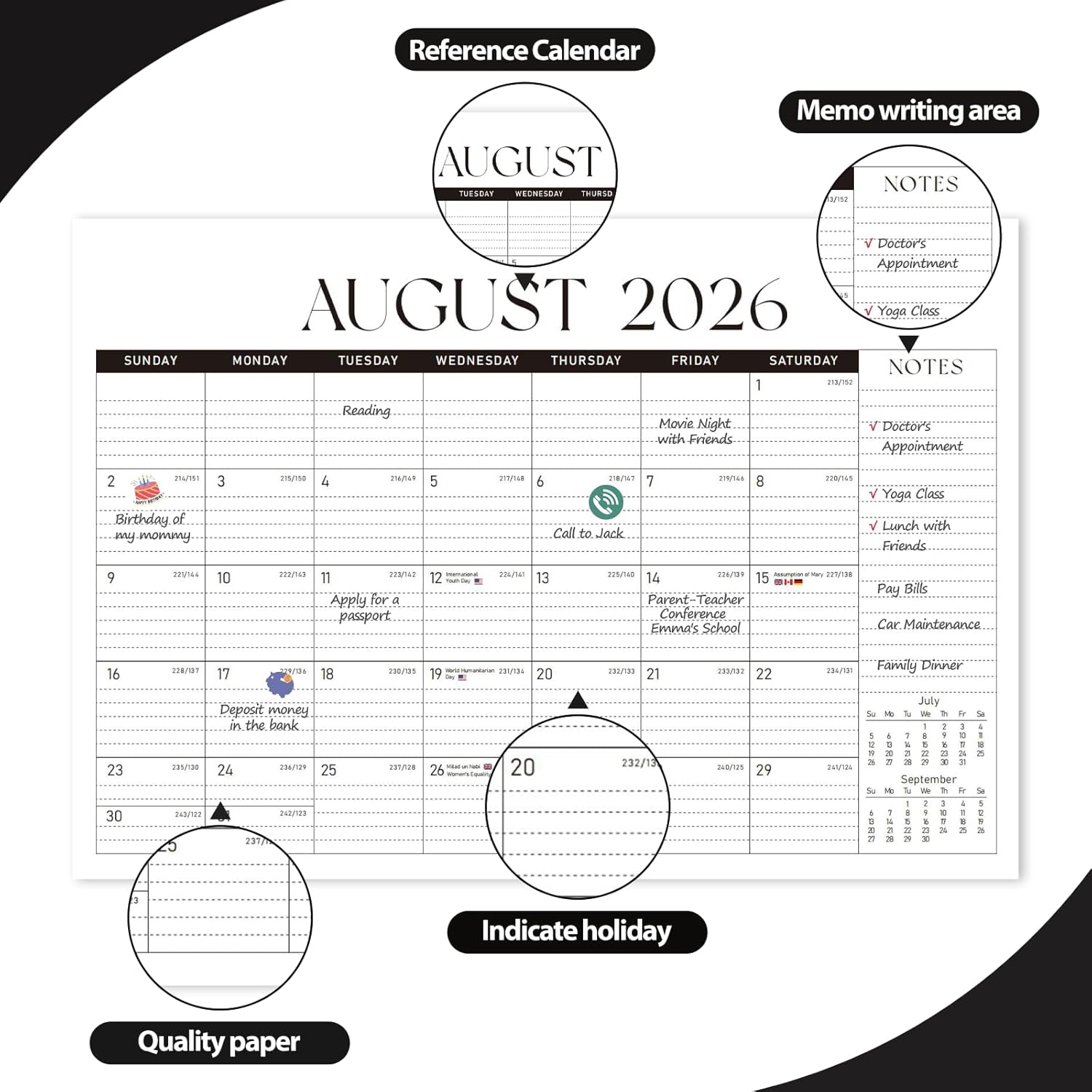 • [IMPORTANT DATES COVERAGE] -Our calendar covers all important holidays and events, ensuring that you can plan ahead effectively. With its large size of 17*12 inches, this calendar provides ample writing space as well.