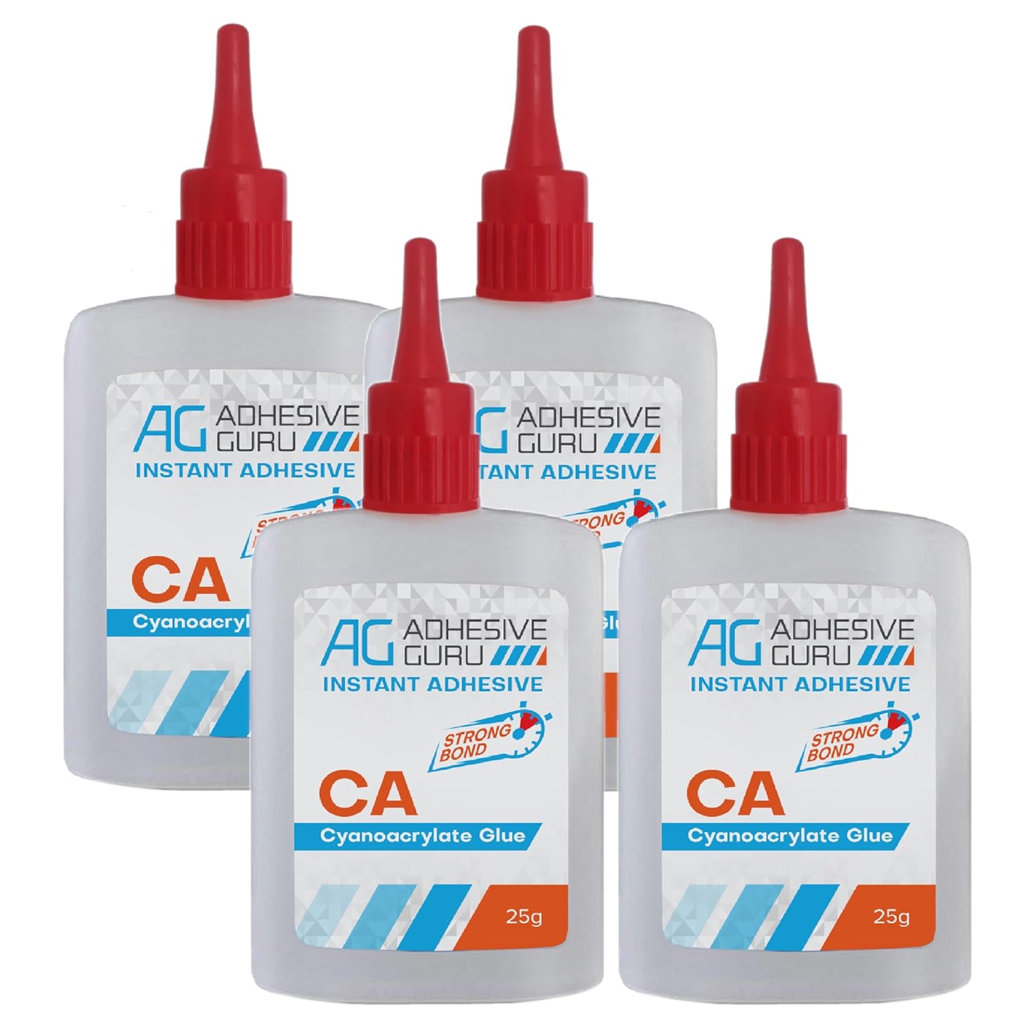 Adhesive Guru Super Glue (4x0.9 oz) for Plastic, Metal, Leather, Ceramic - Fast Adhesive for Woodworking, Hobby Models, Carpentry - 4 Pack