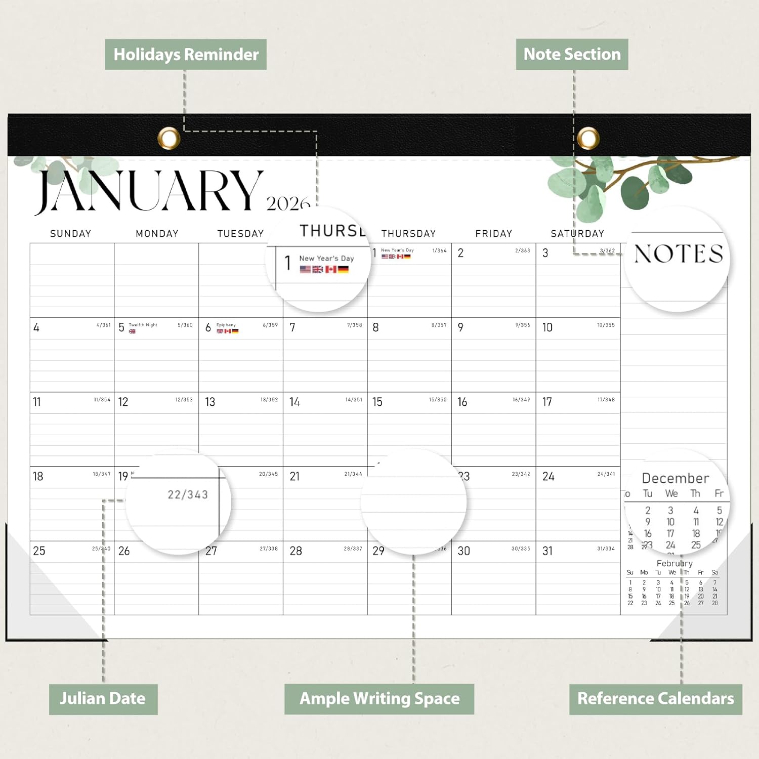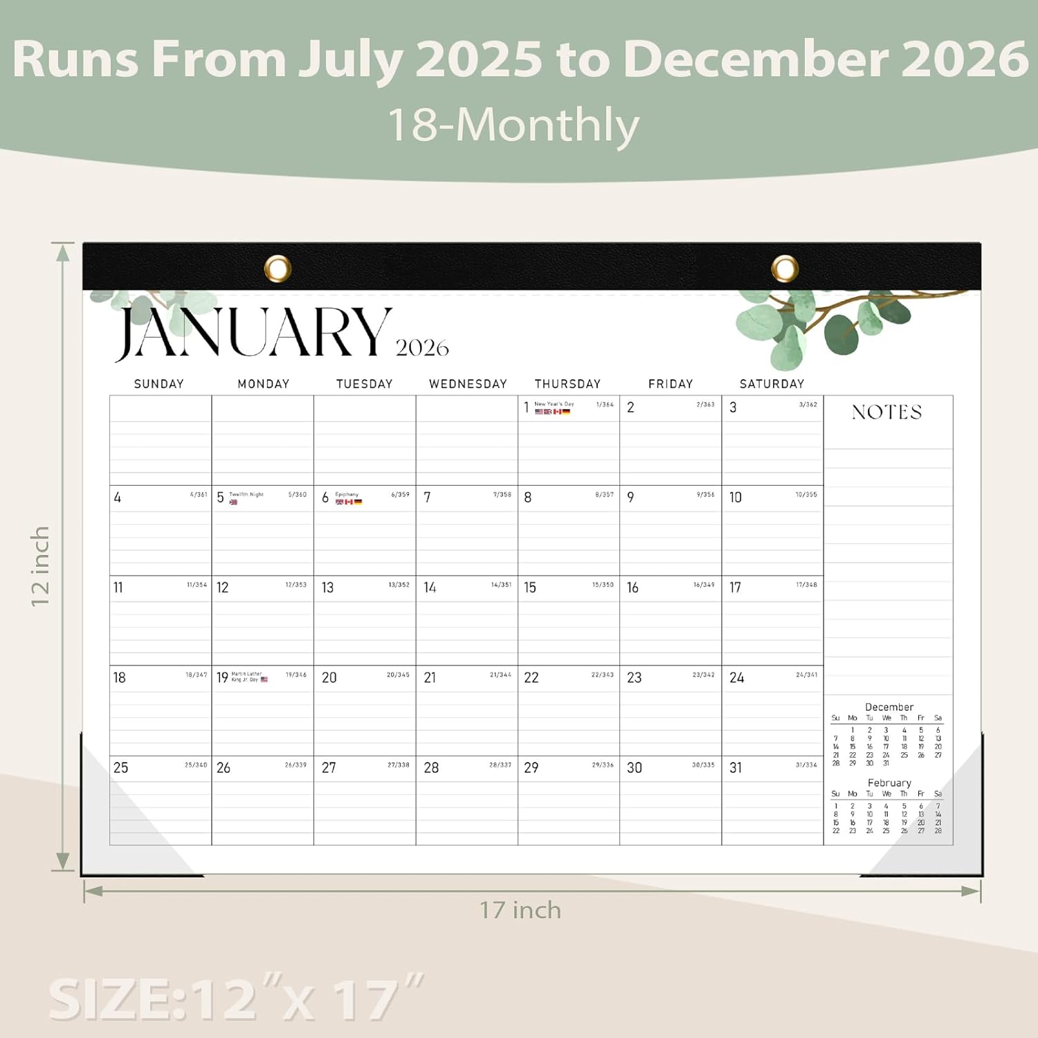 • [18 MONTHS CALENDAR] - Our 2025-2026 desk calendar (17"x12") covers 18 months from July 2025 to December 2026. With highlighted holidays and Julian dates, this calendar ensures you never miss an important deadline or event, making it perfect for long-term projects, school or teaching schedules, and work commitments.