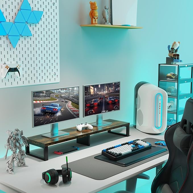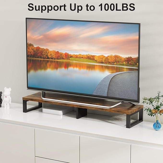 • Monitor Riser with 100lb Capacity: Built with reinforced steel legs and a 39.4" platform, this dual monitor stand doubles as a printer stand, laptop riser, or TV stand. Rock-solid stability meets versatile functionality.
