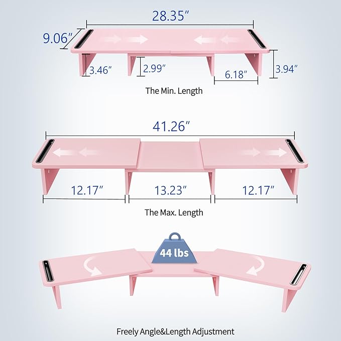 • Flexibility of extension and move: With two sides resting on the middle riser with a pivot point, this desk stand riser makes the whole unit easy to extend and angle.
