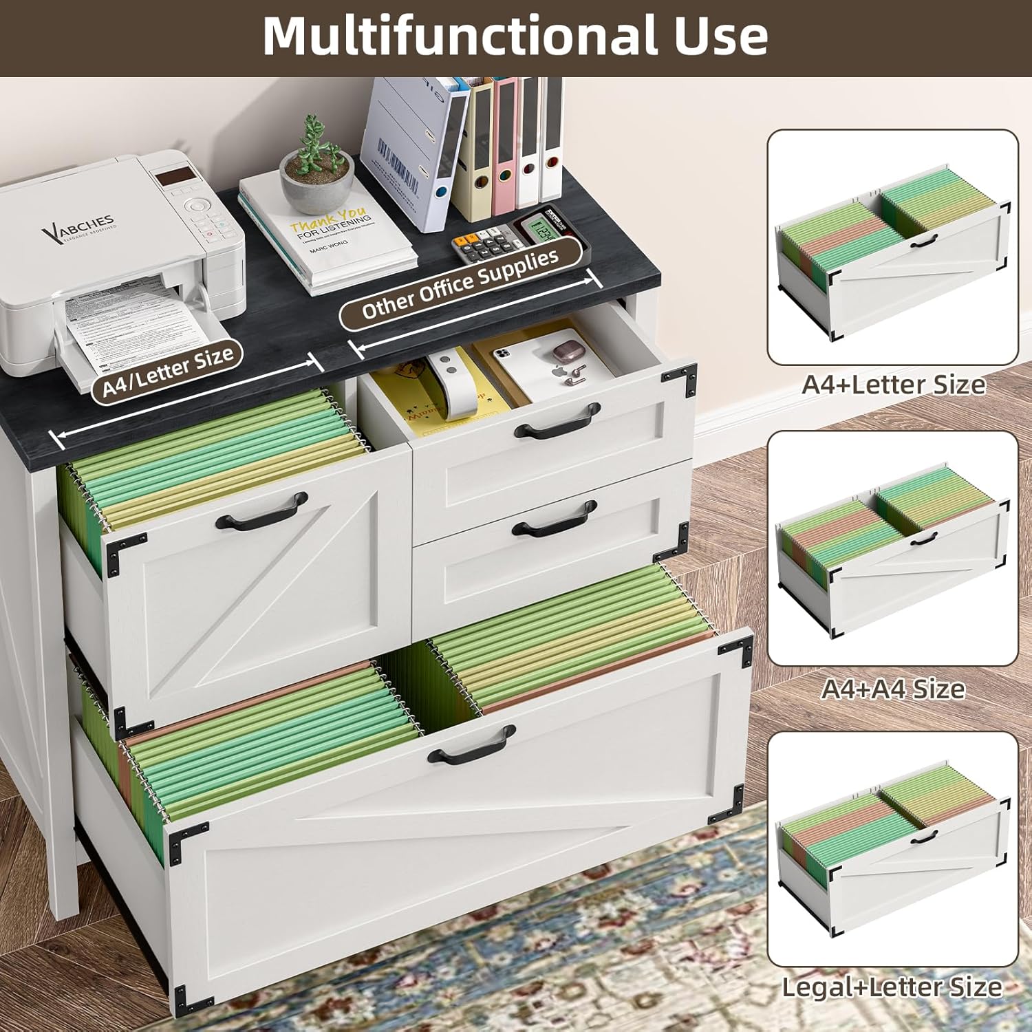 • 🖨️【Multi-functional Storage】This lateral file cabinet can be used not only for hanging files to keep your documents organized. It can also be used as a dresser or large nightstand for household items.The large 33.27"W x 15.75"D desktop is perfect for printers, scanners and more.