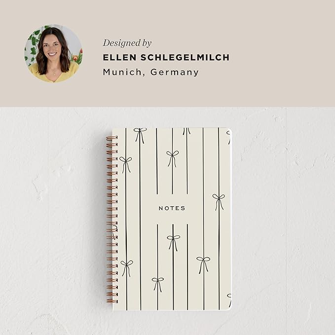 • STYLISH BLACK BOW DESIGN: The Minted Black Bow Notebook showcases an elegant pattern lined with ribbon and bows that brings a fresh and contemporary touch to your writing routine. Perfect for anyone who appreciates simple, artistic designs, this spiral bound journal notebook inspires creativity and keeps your notes organized with flair and elegance.