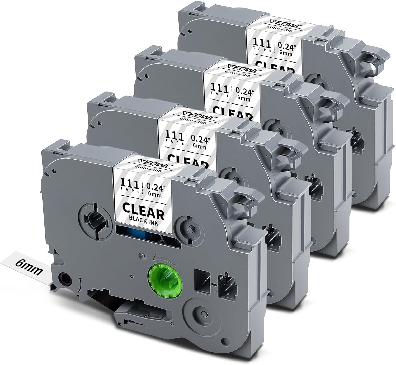 • Package Included: 4 Pack Replacements for Brother Ptouch label maker tapes black on clear TZe-111. Dimensions: Each pack measures 1/6" (0.23") in width and 26.2 ft (8m) in length, totaling 48 meters across all packs.
