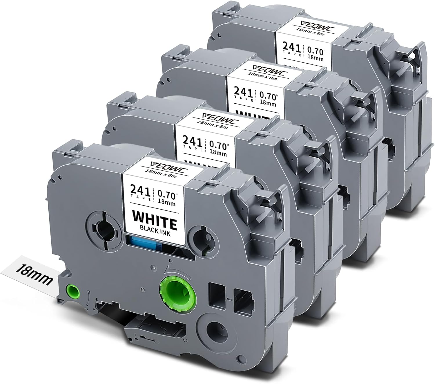 TZe-241 18mm 0.7 Laminated White Tape Compatible for Brother TZe241 Tz-241 P Touch 3/4" TZe TZ Tape for Brother Ptouch PT-D400 PT-D600 PT-D410 PT-D610BT PTD460BT Label Maker, Black on White, 4-Pack