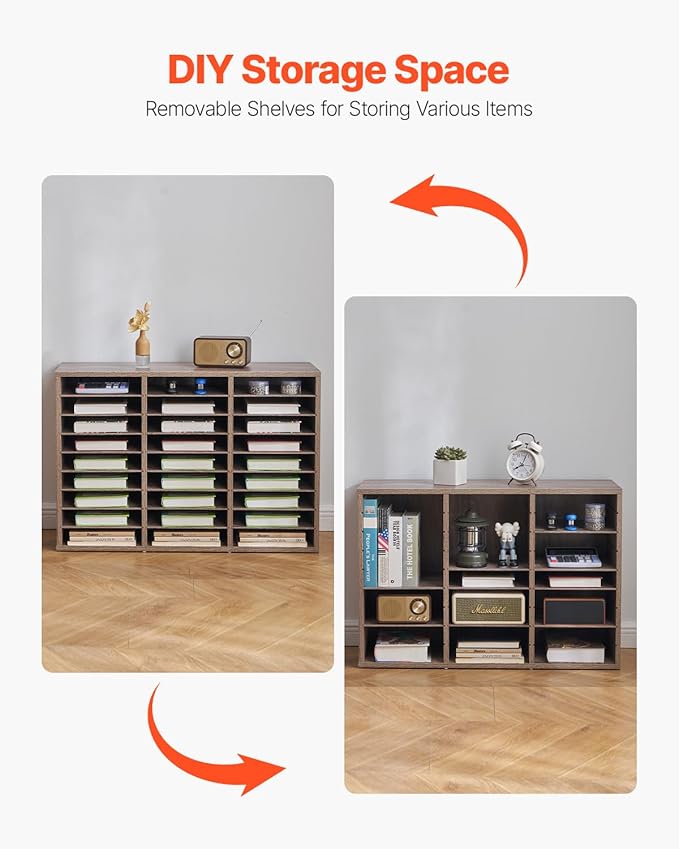 VEVOR Literature Organizer, 27 Compartments Office Mailbox with Removable Shelves, Wood Mailbox Sorter Particle Board Office Home Classroom Storage, File Sorter for File, Document, Paper, Black-Grey