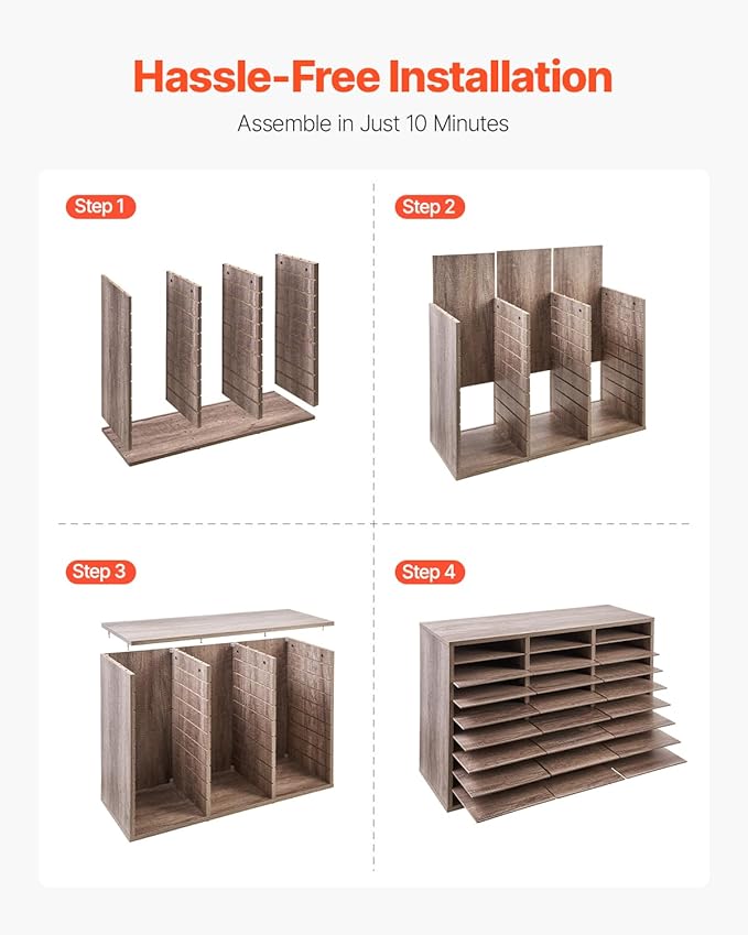 • Quick Assembly: Get organized in no time with the wood file sorter. Its simple panel design and clear instructions mean you can assemble it in just 10 minutes. No hassle, no fuss—just a tidy and efficient workspace.