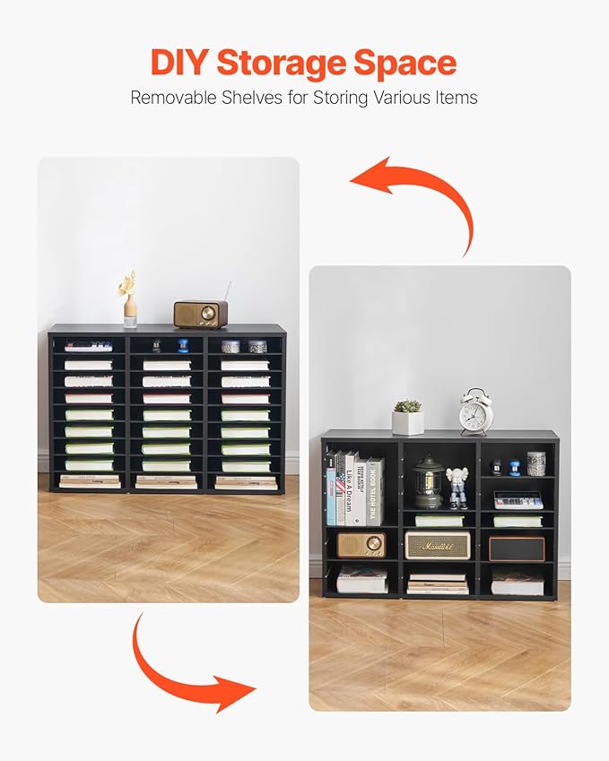 VEVOR Literature Organizer, 27 Compartments Office Mailbox with Removable Shelves, Wooden Mailbox Sorter Particle Board Office Home Classroom Storage, File Sorter for Files, Documents, Papers, Black