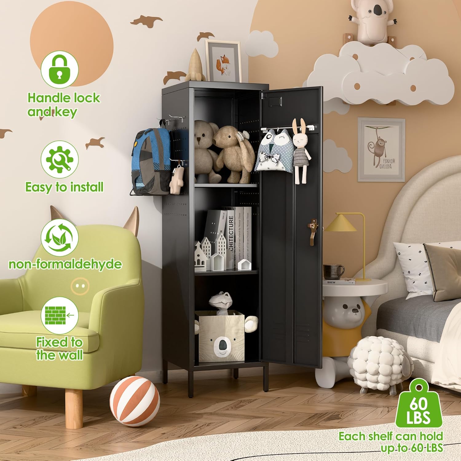 • 【Sturdy and Higher Quality】100% steel material is made into metal storage cabinets,Powder coating process makes storage cabinets Sturdy and higher quality.