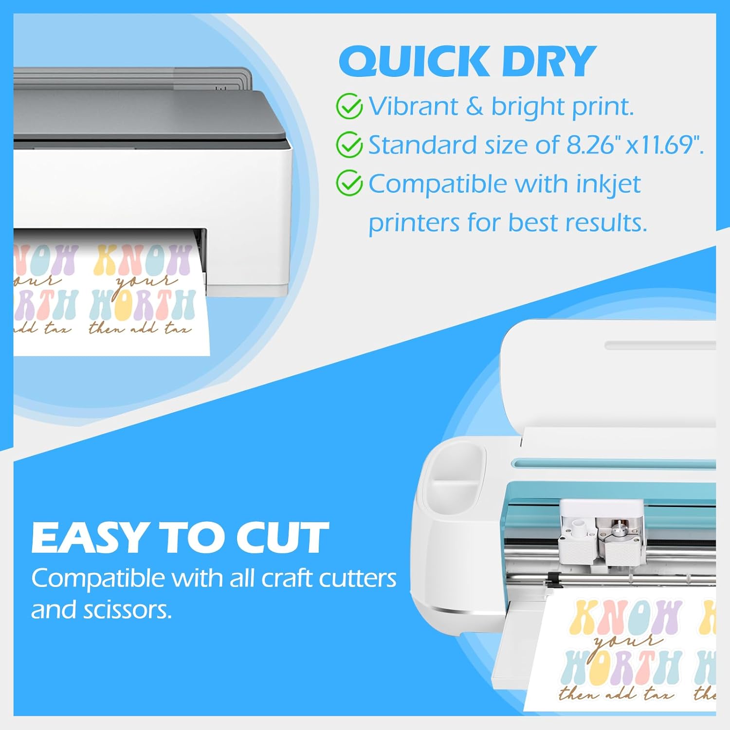 • Perfect for DIY Stickers – Easily create vibrant, personalized vinyl stickers by printing your designs on inkjet printable sticker vinyl. Simply design on your computer and print on printable vinyl sticker paper for high-quality results easily.