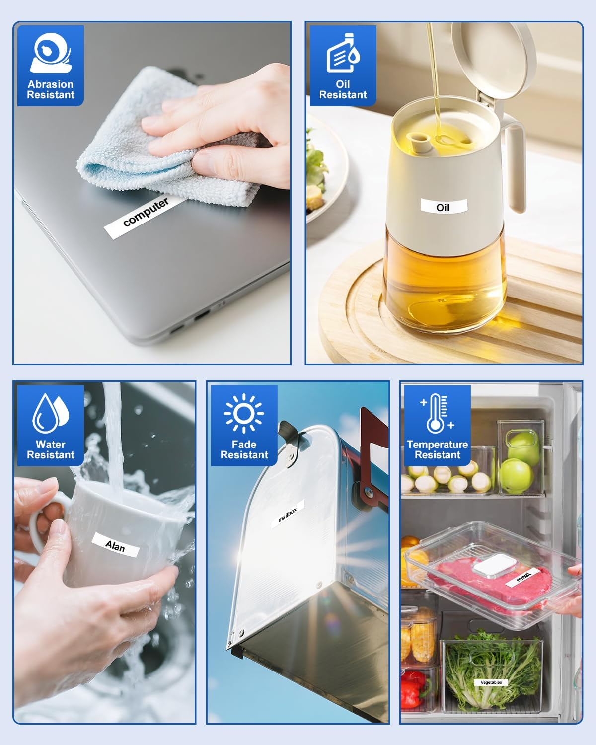 • Features: Our 9mm label tape split design makes the label tape easy to peel and apply, with strong adhesion/waterproof/temperature/oil/abrasion/fading, and reliably sticking to various surfaces