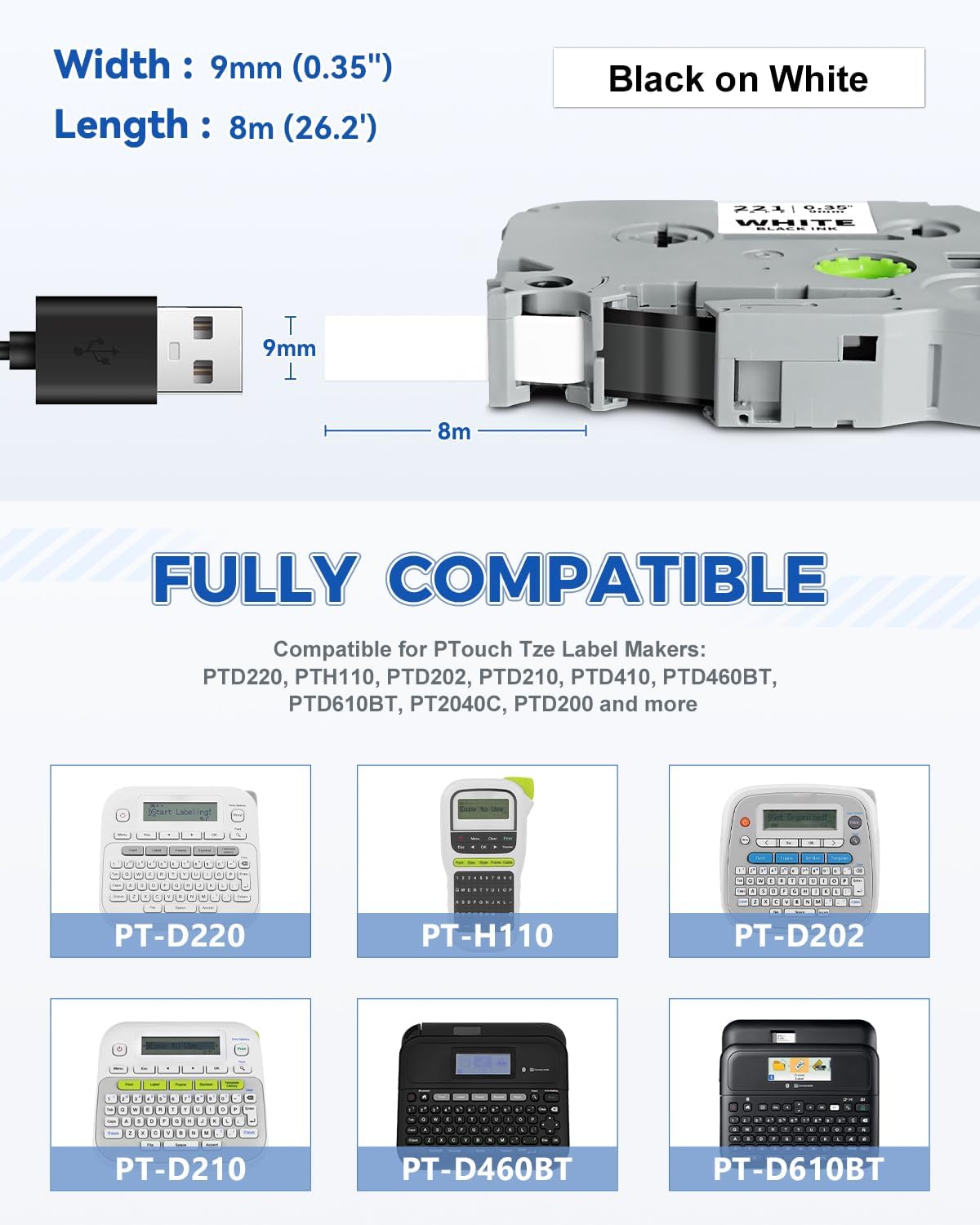 • Compatible for Brother Tze 6mm Label Maker: PTH110, PTD220, PTD410, PTD460, PTD410VP, PTD610BT, PTD610BTVP, PTD200, GL100, PTD201, PTD202, PTD210, PTD215e, PTE100, PTE105, PTE110, PTH100, PTH105, PTH111, PTH200, PTP300BT, PTD400, PTD450, PTE300, PTH300, PTD600, PTE500, PTE550W, PTH500, PTP700, PTP710BT, PTP715eBT, PTP750W, PTD800W, PTE800W, PTP900, PTP900W, PTP950NW, PTP910BT