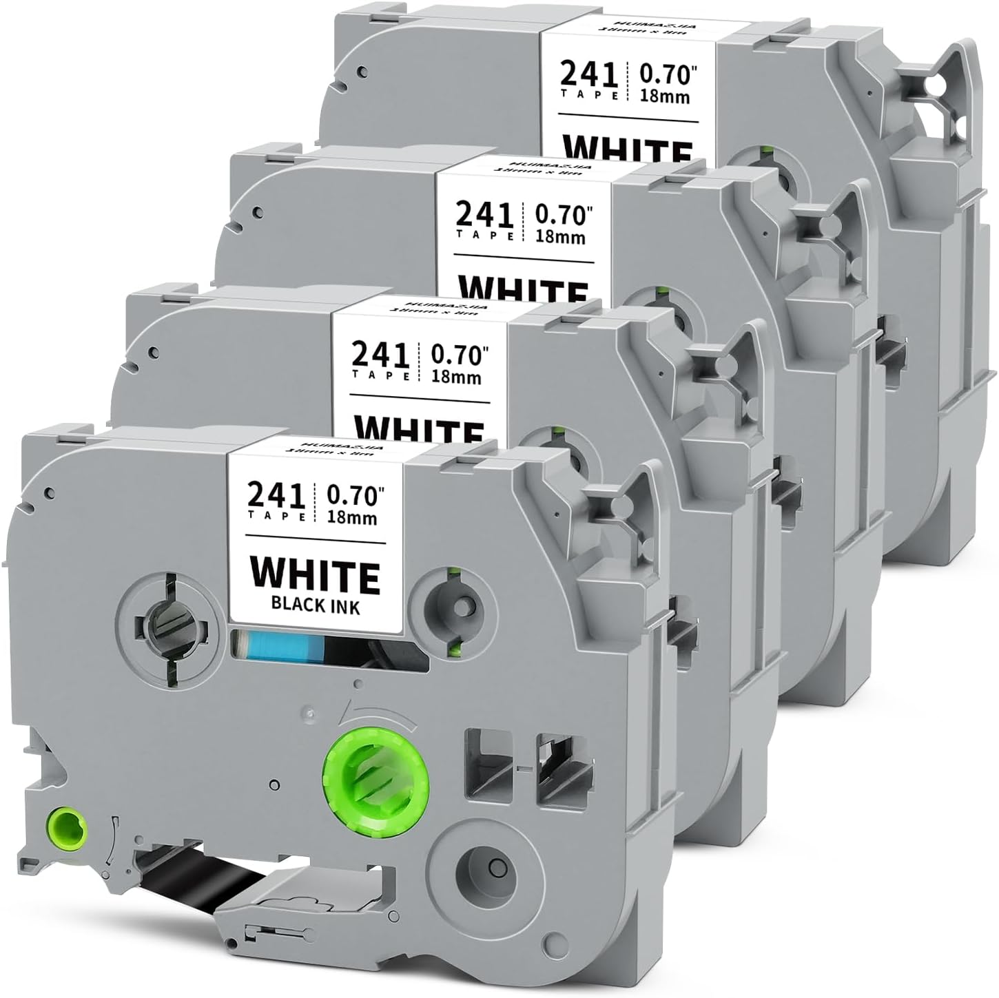 Tze241 18mm 0.7" Laminated White Tape Compatible for Brother Tze-241 Tz-241 P Touch Label Tape Tze Tz 18mm 3/4" Black on White for PTP410 PTD610BT PTD400 PTD600 PTD460BT Label Maker, 4-Pack