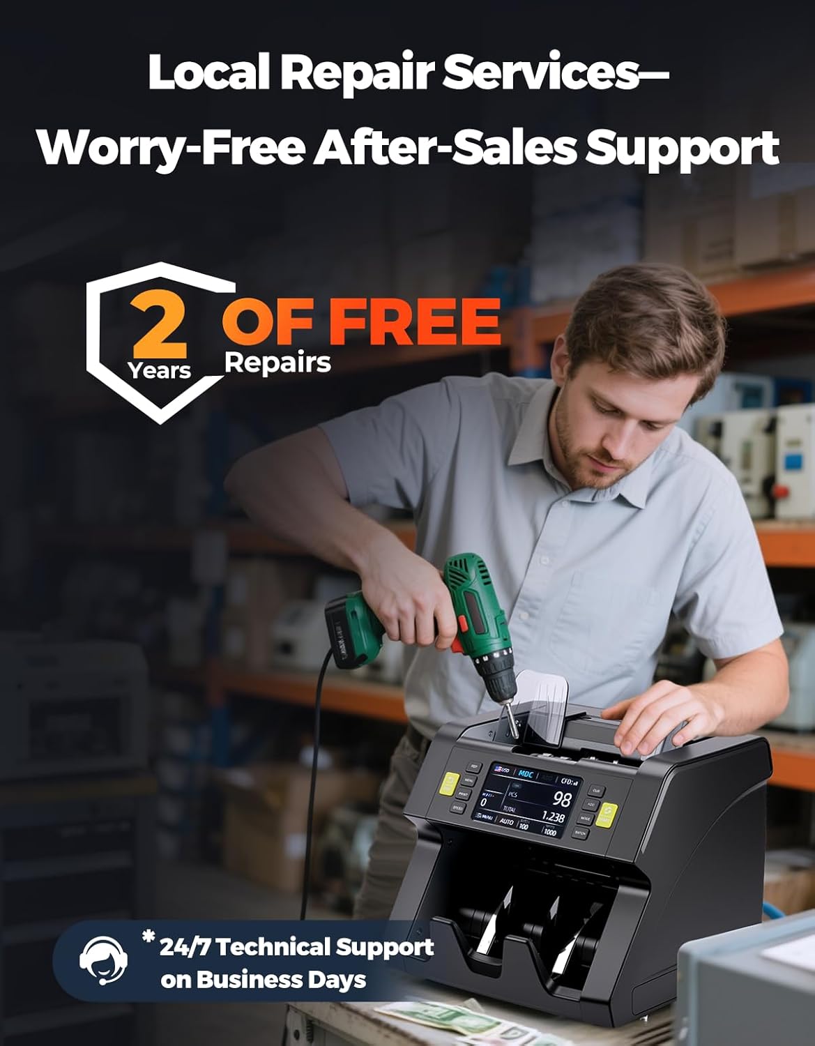 • [Technical Support] We provide- ①Two years of quality protection. If you need repair services, our local centers(within the United States)are available to assist you. Get in touch with us. ②lifetime software upgrade, and 24-hour technical support available on weekdays. ③For your privacy and security, there is no information about the cash counting machine on the outer box.