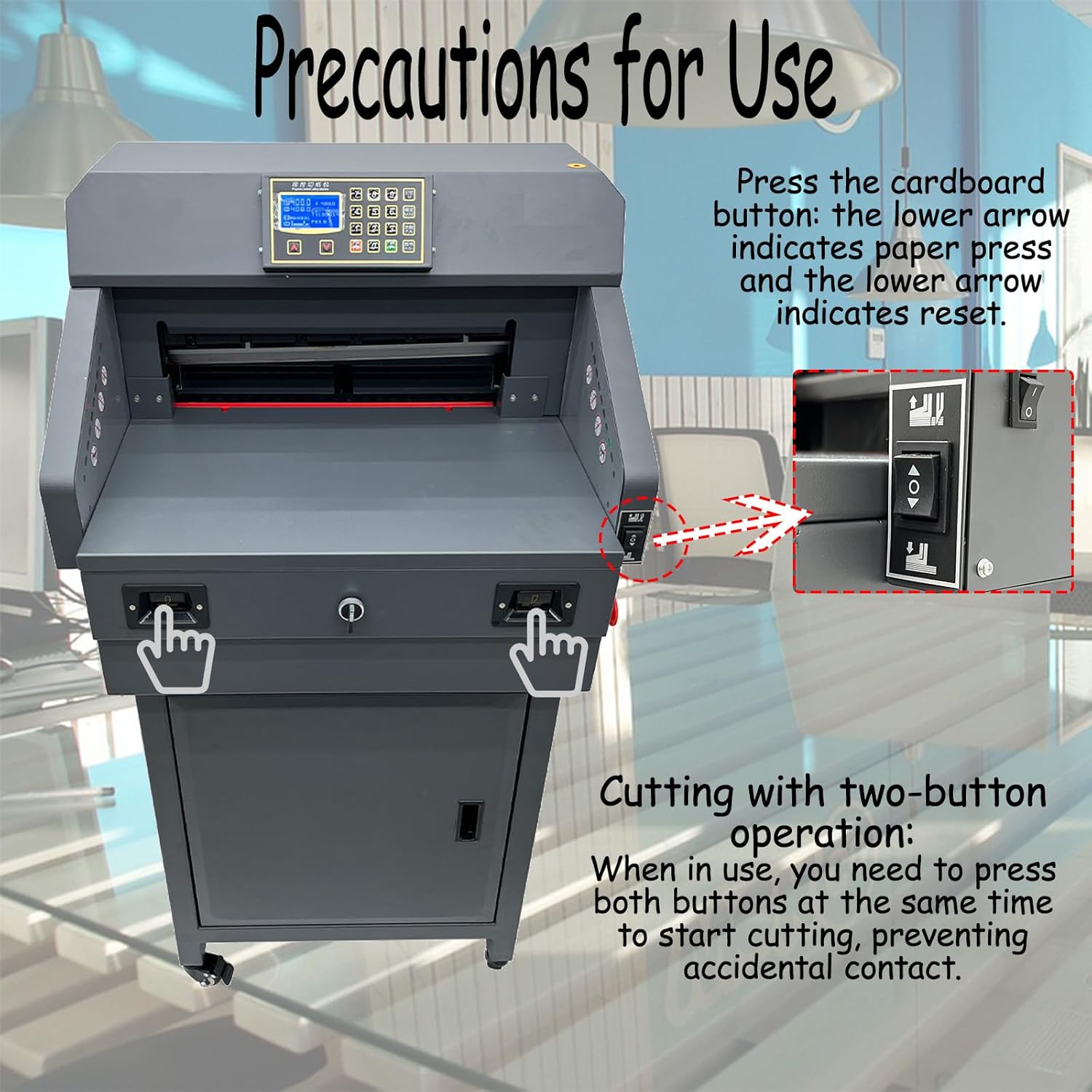 • Humanized Design: The storage cabinet at the bottom of the paper cutter can classify and store commonly used knives/supplies, and comes standard with a knife pad to extend the service life of the core components