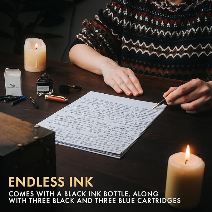 • ✒️What A Gorgeous Gift - The Wordsworth and Black fountain pen comes with a luxury Rose Wood carrying case and free converter, making it the ideal gift for graduation, Father's Day, or a promotion celebration. Whether giving to a graduate, thanking a wedding party, or even corporate events, the professional finishes and sleek shape make a striking impression. Versatile design allows for seamless transition from boardroom meeting to bedroom journaling.