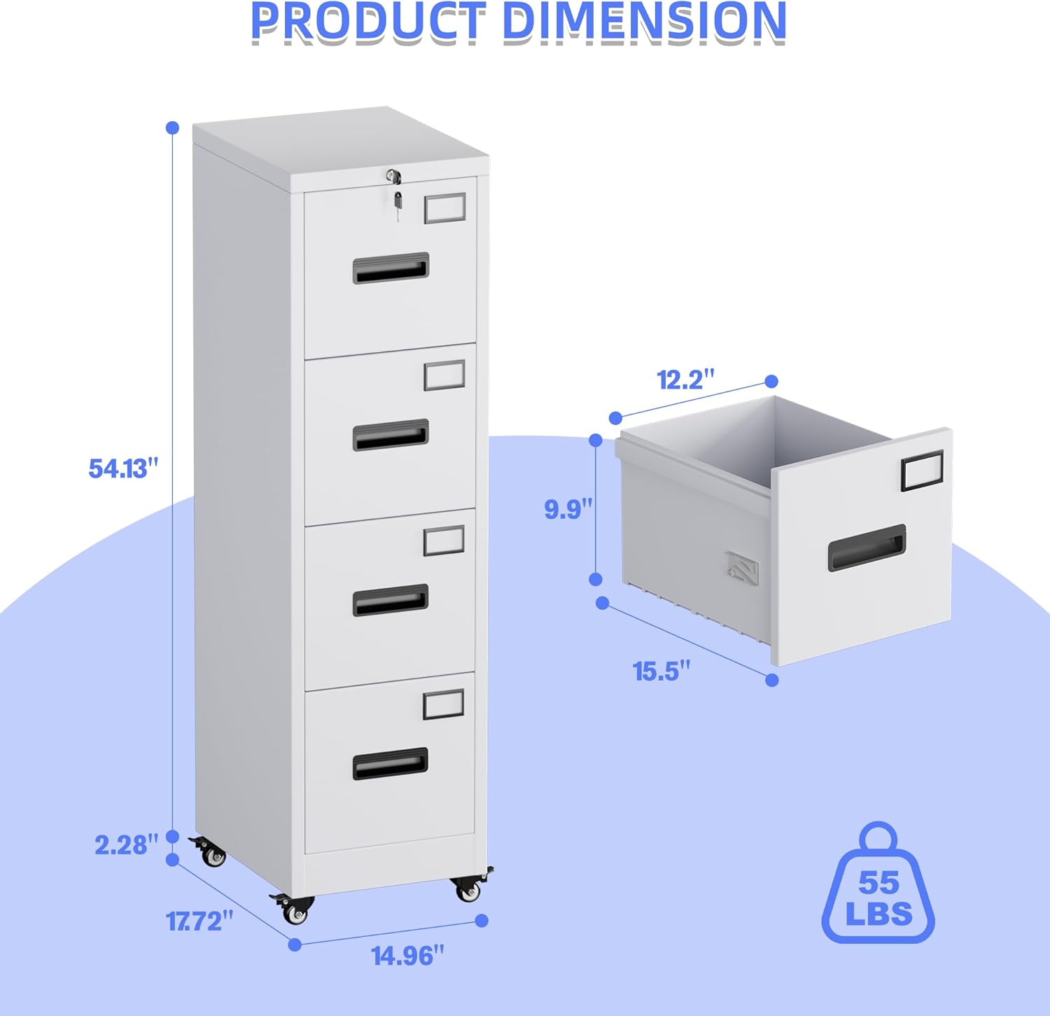 • [Full Extension Drawer] The 4 drawer file cabinet with lock silent rails of the steel file cabinet can be open and close fully, making it easier to get all folders even at the back of the drawer