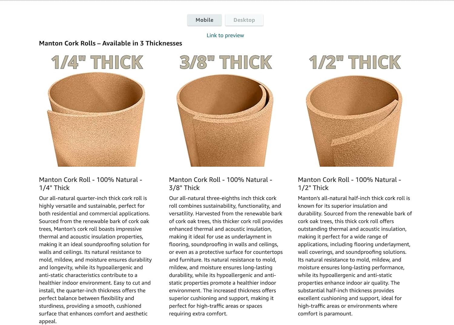 • Cork material especially for home improvement projects. Design a cork wall or tacking pin-up area