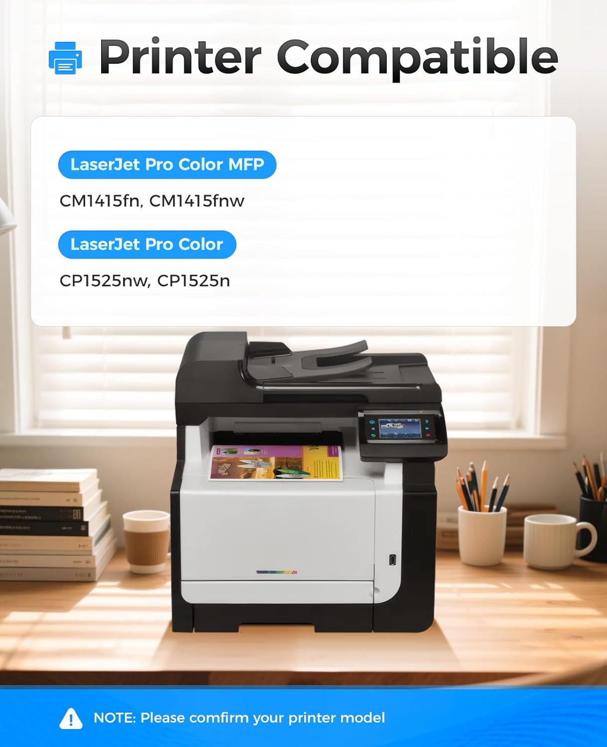 • Compatible Devices : Compatible with HP LaserJet Pro Color MFP CM1415fn CM1415fnw LaserJet Pro Color CP1525nw CP1525n Printer. Compatible with HP LaserJet Pro Color MFP CM1415fn CM1415fnw LaserJet Pro Color CP1525nw CP1525n Printer.