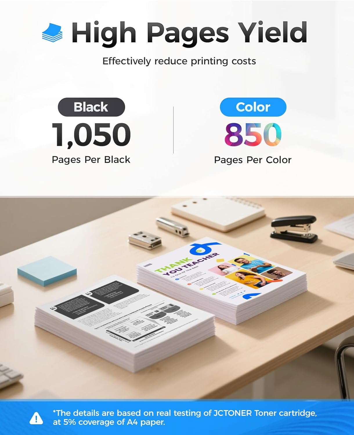 • The latest chip version: The JCTONER toner cartridges are equipped with the latest version of built-in chips, ensuring perfect compatibility between each toner cartridge and the printer. This enables you to print efficiently while maintaining stability and reliability, making installation convenient without the need for manual adjustments. All JCTONER toner cartridges have undergone strict quality testing and have obtained ISO9001 certification. High-quality toner cartridges can meet the demand for high printing volume. The fine toner ensures clear and stain-free printing results and extends the lifespan of the printer. You can purchase with confidence.