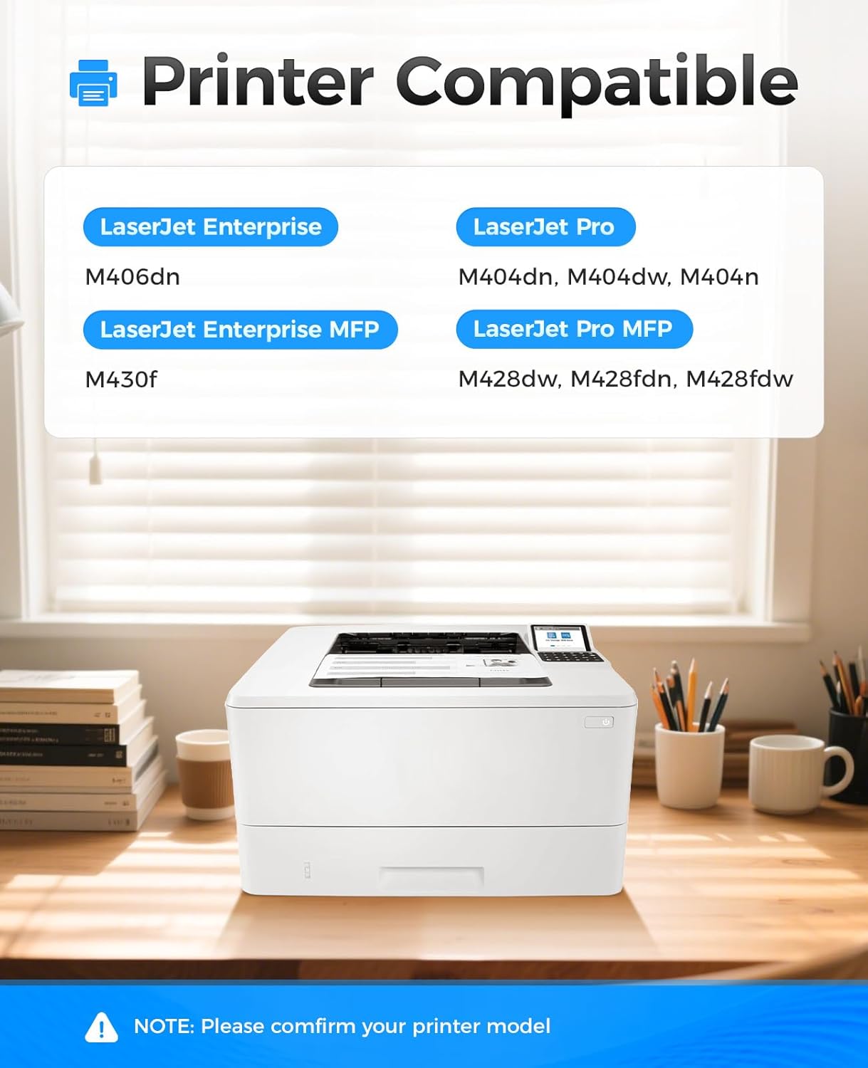 • Compatible Printers: Compatible with HP LaserJet Enterprise M406dn, LaserJet Enterprise MFP M430f, LaserJet Pro M404dn M404dw M404n, LaserJet Pro MFP M428dw M428fdn M428fdw Series Printer.