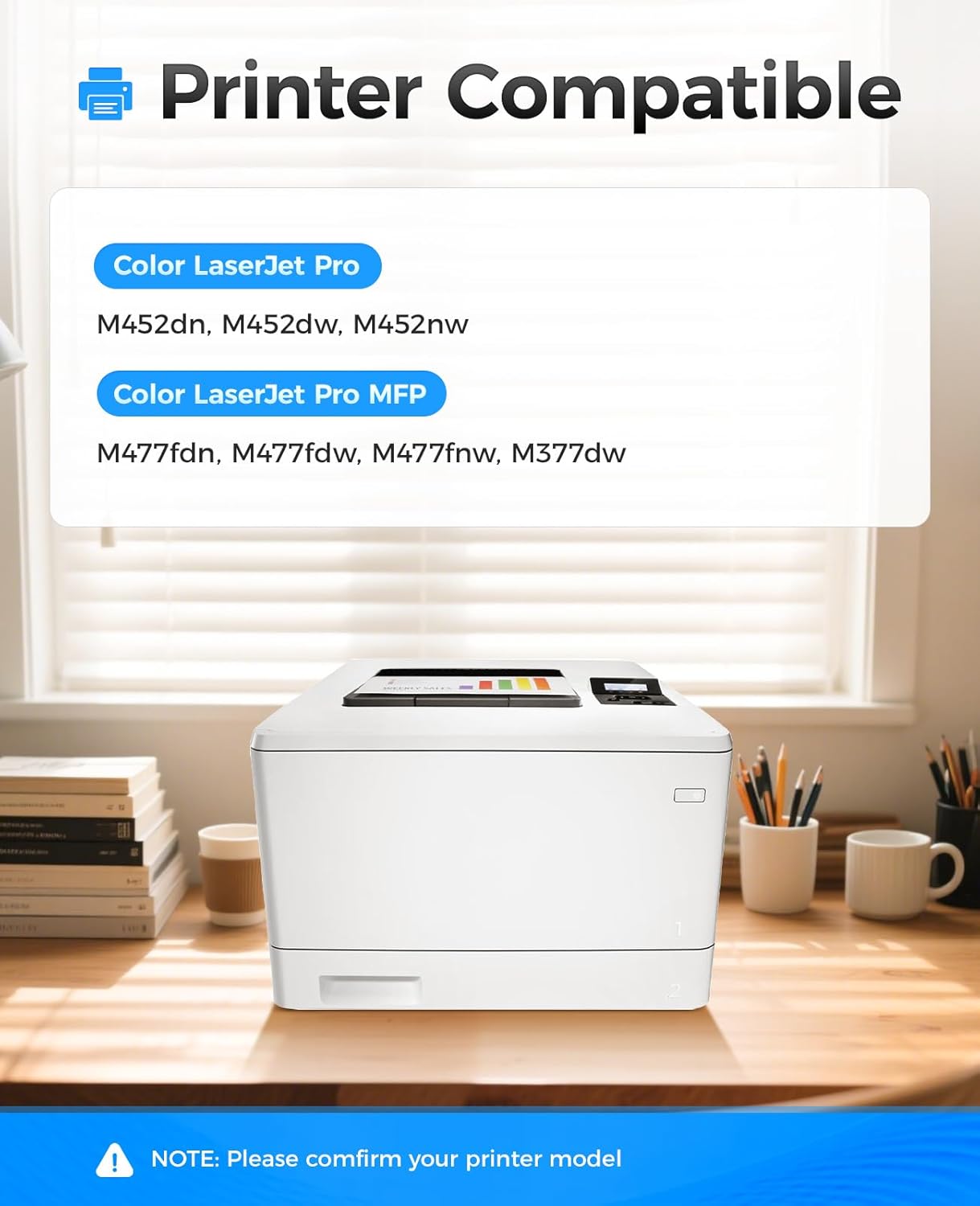 • Compatible Printers: Compatible with HP Color LaserJet Pro M452dn M452dw M452nw Color LaserJet Pro MFP M477fdn M477fdw M477fnw MFP M377dw Series Printer.