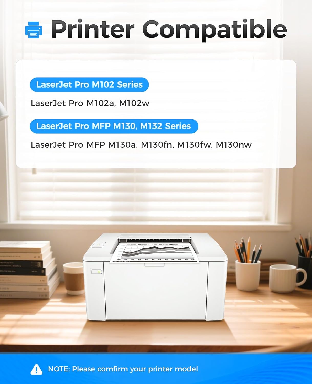 • Compatible Printers: Compatible with HP LaserJet Pro M102 M102a M102w, LaserJet Pro MFP M130 M132 M130a M130fn M130fw M130nw Series Printer.